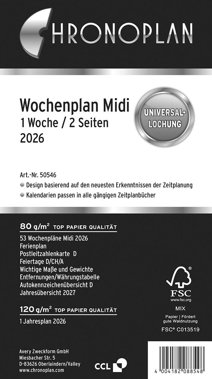 CHRONOPLAN Kalendereinlage Wochenplan Midi 2026