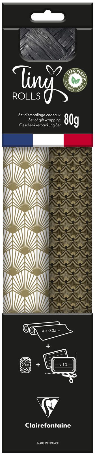 Das Clairefontaine Geschenkpapier Set Tiny Rolls in den eleganten Farbtönen Gold und Schwarz bietet eine stilvolle Möglichkeit, Geschenke ansprechend zu verpacken. Mit einer Breite von 35 cm und einer Länge von 5 Metern pro Rolle stehen Ihnen großzügige Flächen zur Verfügung, um Ihre Präsente kreativ zu gestalten. Die matte Oberfläche verleiht dem Papier eine edle, zurückhaltende Optik, die besonders hochwertig wirkt und sich angenehm anfühlt.