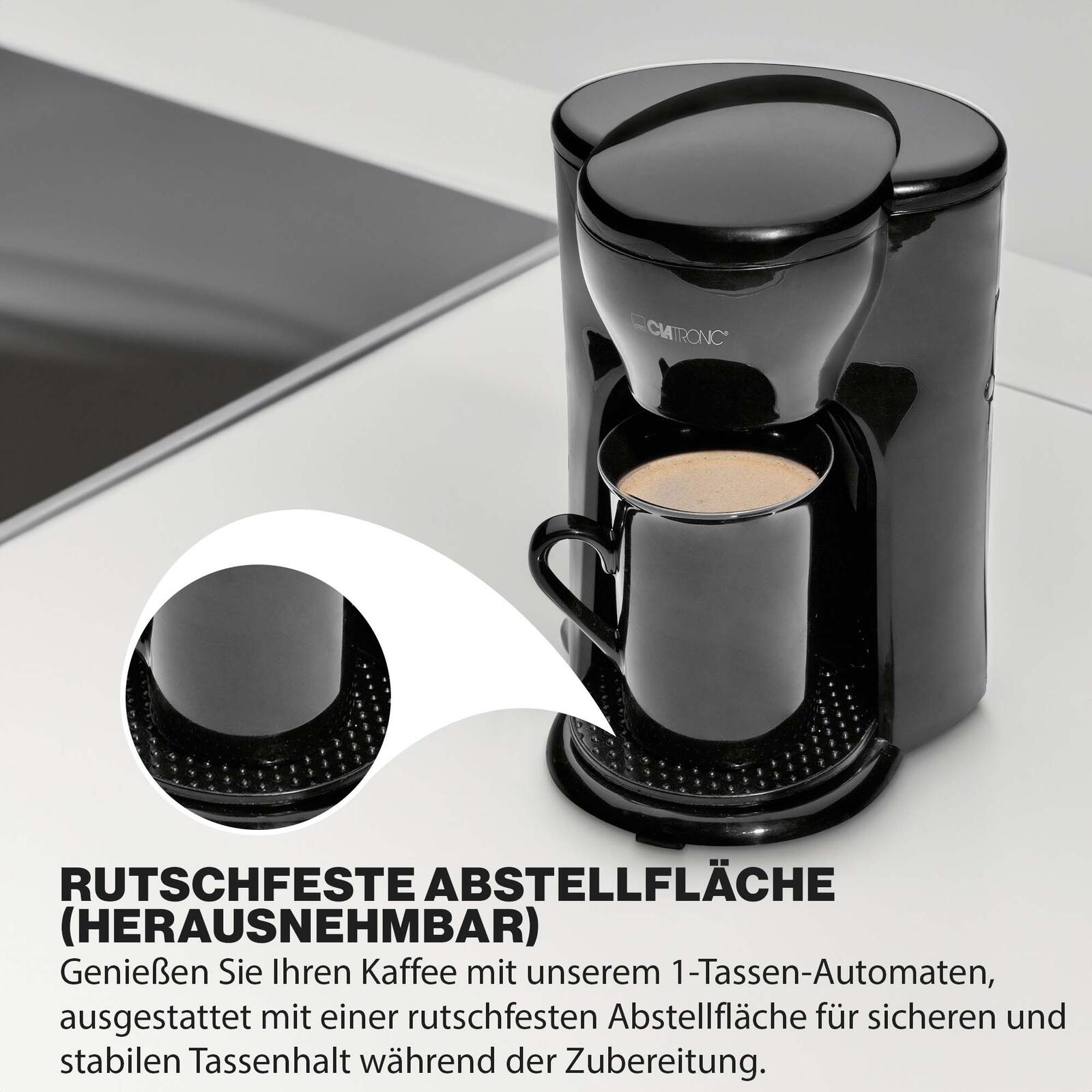 - Besonderheiten: Ein-Tassen-Kaffeeautomat für Filterkaffee, platzsparendes Design, ideal für unterwegs, rutschfeste, herausnehmbare Abstellfläche