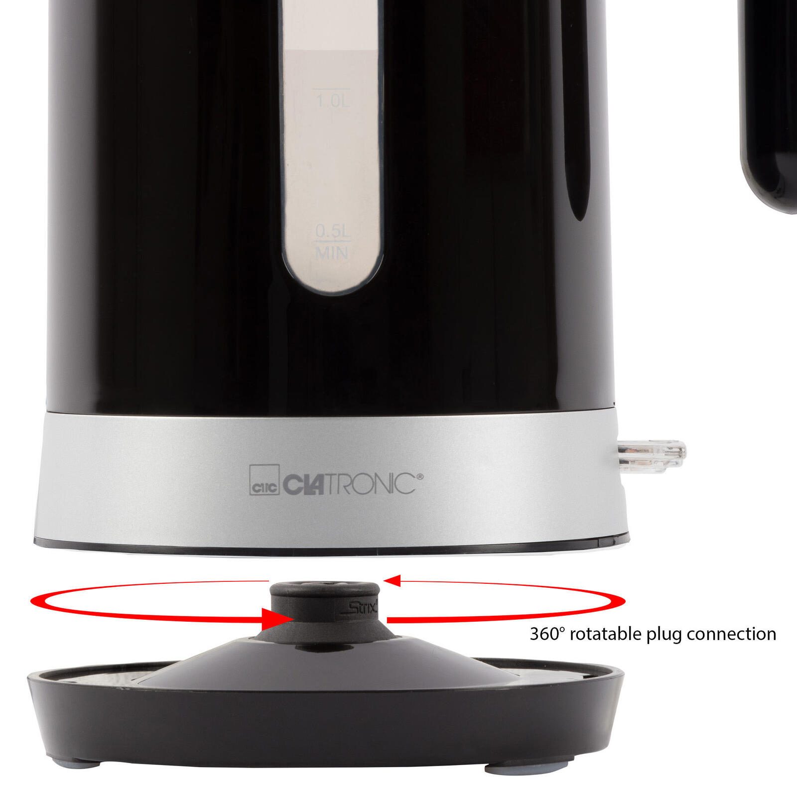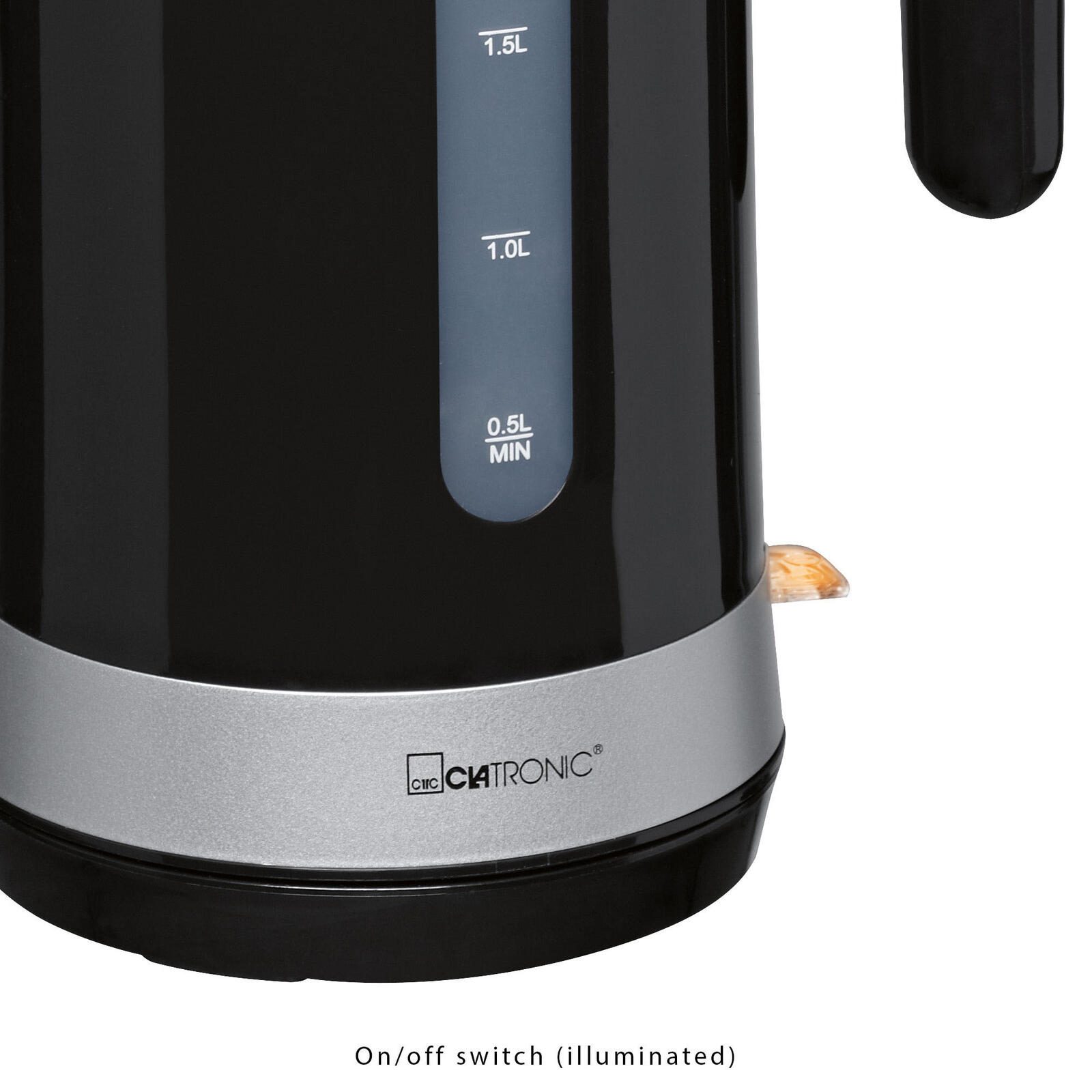 Der CLATRONIC WK3452 Wasserkocher vereint modernes Design mit hoher Funktionalität und ist der ideale Begleiter für deine Teestunden oder die Zubereitung von Instantgerichten. In elegantem Schwarz gehalten, fügt sich dieser Wasserkocher harmonisch in jede Kücheneinrichtung ein und wird schnell zum unverzichtbaren Küchenhelfer. Mit einem großzügigen Fassungsvermögen von 1,8 Litern bietet der WK3452 ausreichend Platz, um mehrere Tassen gleichzeitig zu kochen. Dies ist besonders praktisch, wenn du Gäste hast oder einfach nur deinen eigenen Bedarf decken möchtest. Die leistungsstarke Leistungsaufnahme von 2200 W sorgt dafür, dass das Wasser in kürzester Zeit zum Kochen gebracht wird, sodass du keine Zeit mit Warten vergeuden musst. Die durchdachte Konstruktion mit einem Klappdeckel ermöglicht ein einfaches Befüllen und Reinigen des Wasserkochers. Der Deckel öffnet sich mit nur einem Knopfdruck, was die Handhabung erheblich erleichtert. Zudem ist der Wasserkocher mit einem Überhitzungsschutz ausgestattet, der für zusätzliche Sicherheit sorgt und ein ungewolltes Überkochen verhindert. Dank der hochwertigen Verarbeitung und der zuverlässigen Technik von CLATRONIC kannst du dich auf eine lange Lebensdauer und eine gleichbleibend hohe Leistung verlassen. Der WK3452 Wasserkocher ist nicht nur funktional, sondern auch ein stilvolles Accessoire für deine Küche. Entscheide dich für den CLATRONIC WK3452 Wasserkocher und genieße die Vorteile eines leistungsstarken, benutzerfreundlichen Geräts, das dir das Kochen von Wasser zum Vergnügen macht.Technische Daten
