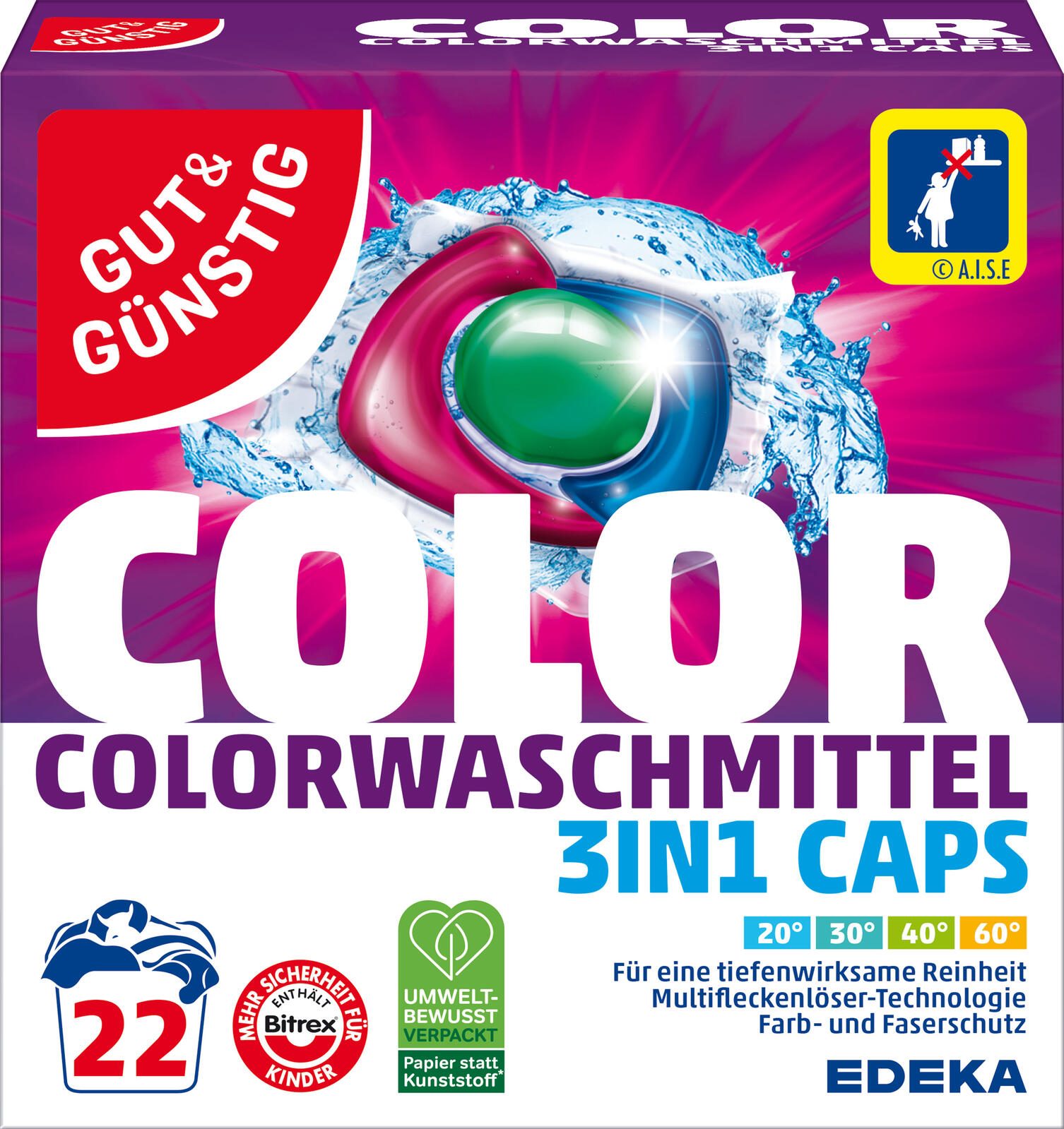 Das GUT&GÜNSTIG Waschmittel frisch in der praktischen Packung mit 22 Pads ist die ideale Lösung für deine Buntwäsche. Jedes Pad wurde sorgfältig entwickelt, um eine effektive Reinigung zu gewährleisten und gleichzeitig die Farben deiner Kleidung zu schützen. Die innovative Caps-Form sorgt dafür, dass du die richtige Menge Waschmittel immer zur Hand hast, ohne dass es zu Verschwendung kommt.