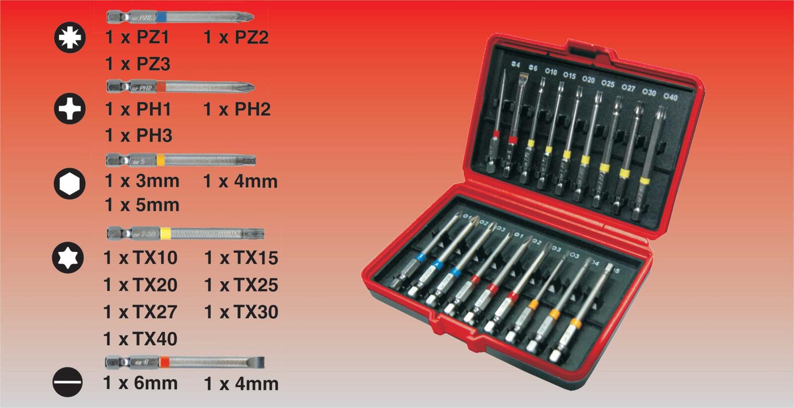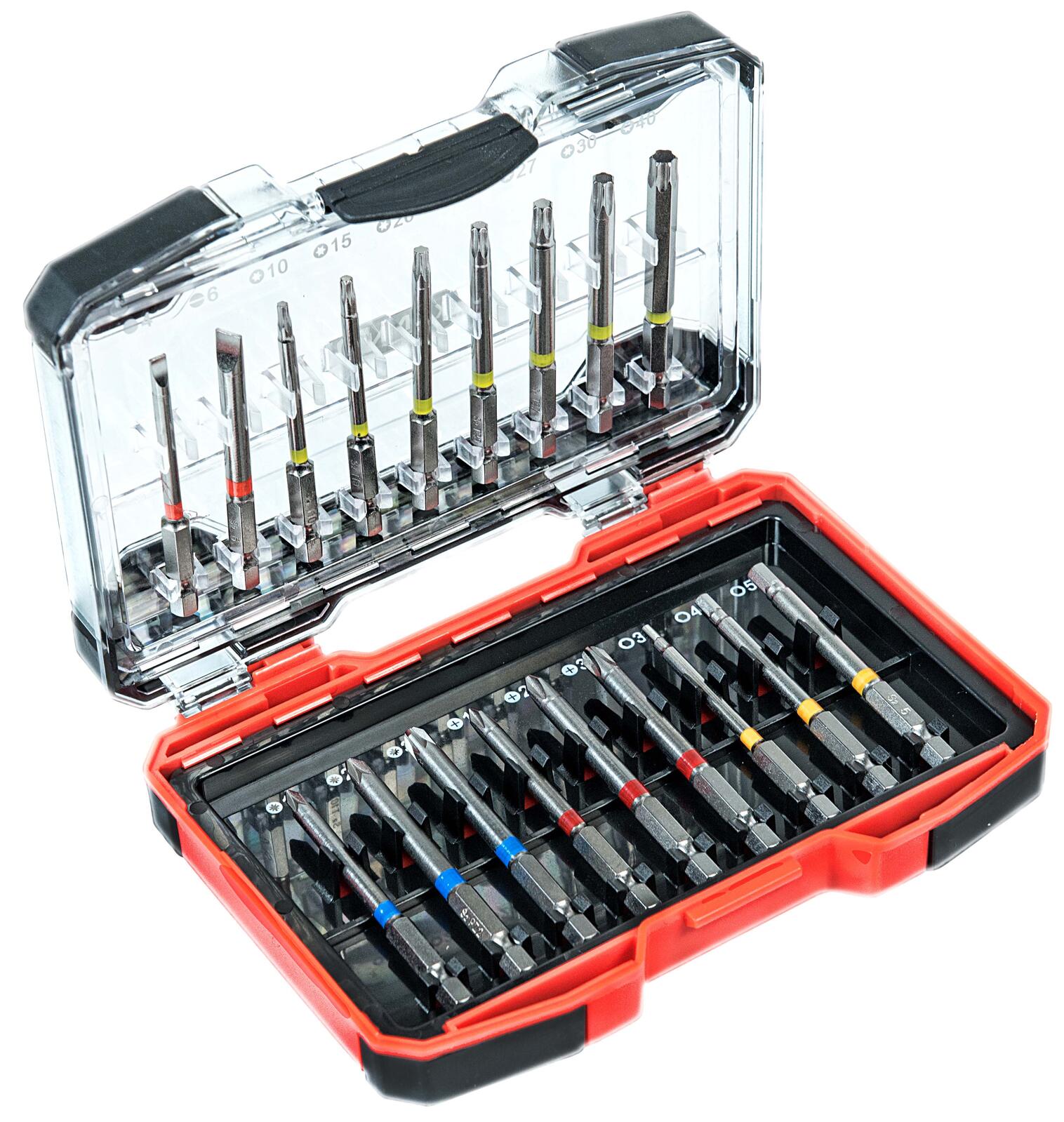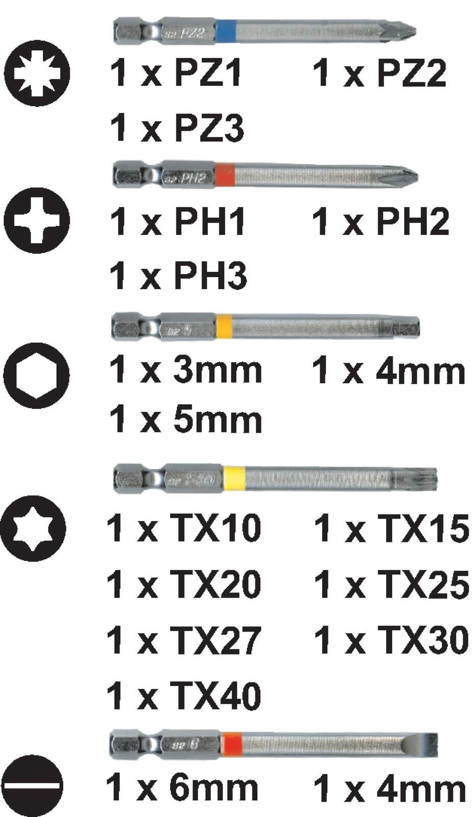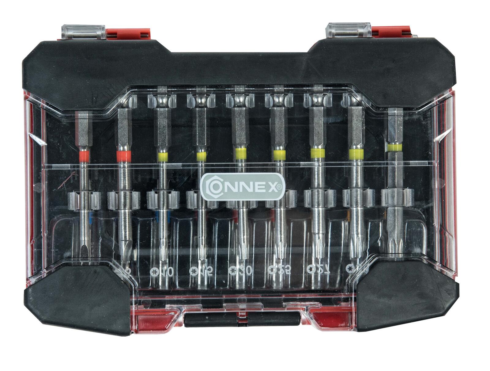 Das CONNEX Bit-Set 18-teilig ist die ideale Lösung für alle, die Wert auf Vielseitigkeit und Qualität legen. Dieses umfassende Set enthält 18 verschiedene Bits, die für eine Vielzahl von Materialien geeignet sind. Egal, ob du mit Holz, Metall oder Kunststoff arbeitest, dieses Bit-Set bietet dir die passende Auswahl, um deine Projekte effizient und präzise umzusetzen. Die Bits sind aus hochwertigen Materialien gefertigt und garantieren eine lange Lebensdauer sowie eine hohe Widerstandsfähigkeit. Jedes Bit ist so konzipiert, dass es optimal in gängigen Schraubenzügen sitzt, was ein Abrutschen und Beschädigungen der Schraubenköpfe minimiert. Dank der durchdachten Auswahl der Bits bist du bestens ausgestattet, um sowohl einfache als auch komplexe Aufgaben zu bewältigen. Das CONNEX Bit-Set ist nicht nur funktional, sondern auch praktisch. Die kompakte Aufbewahrung ermöglicht eine einfache Handhabung und sorgt dafür, dass du immer den richtigen Bit zur Hand hast. Die übersichtliche Anordnung der Bits erleichtert die Auswahl und spart wertvolle Zeit bei deinen Arbeiten. Mit dem CONNEX Bit-Set 18-teilig erhältst du ein unverzichtbares Werkzeug, das sich in jeder Werkstatt als nützlich erweist. Ob für Heimwerkerprojekte oder professionelle Anwendungen, dieses Set wird deinen Anforderungen gerecht und sorgt für ein erstklassiges Ergebnis. Vertraue auf die Qualität von CONNEX und erlebe, wie einfach und effektiv das Arbeiten mit dem richtigen Werkzeug sein kann.Technische Daten
