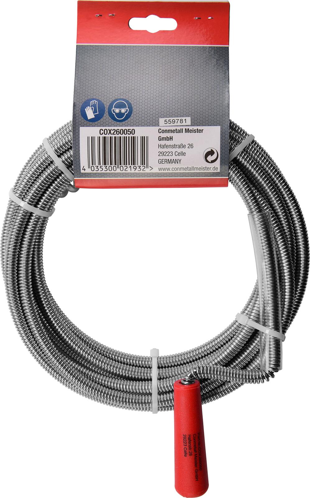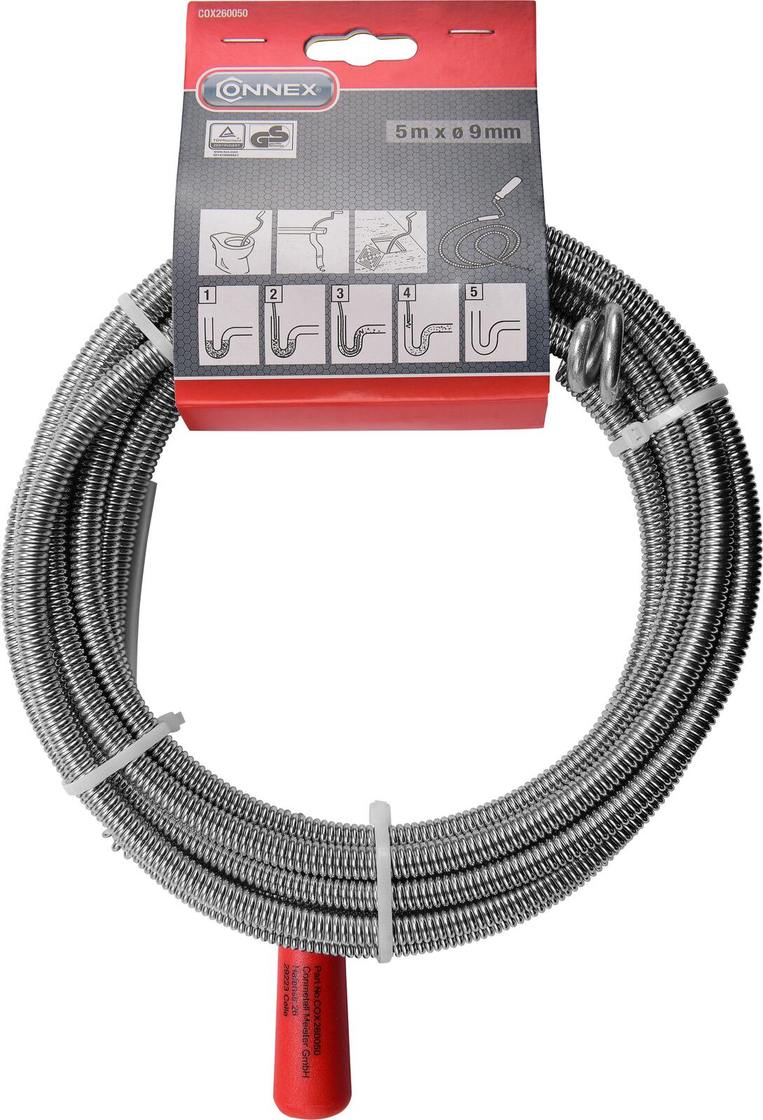 Die CONNEX Rohrreinigungsspirale ist ein zuverlässiges Hilfsmittel für den Haushalt, das die Reinigung von verstopften Rohren erleichtert. Sie ist Teil der Produktfamilie Haushaltsutensilien und wird von der Conmetall Meister GmbH aus Deutschland hergestellt. Das Produkt zeichnet sich durch seine einfache Bedienung und die solide Verarbeitung aus, sodass Du auch ohne technisches Fachwissen Verstopfungen selbst beseitigen kannst.
