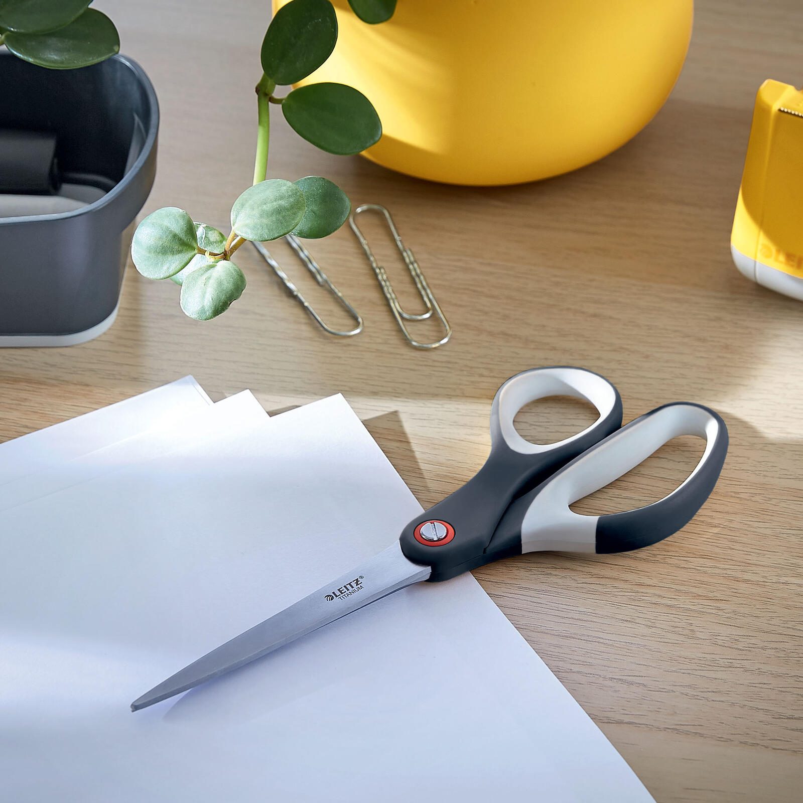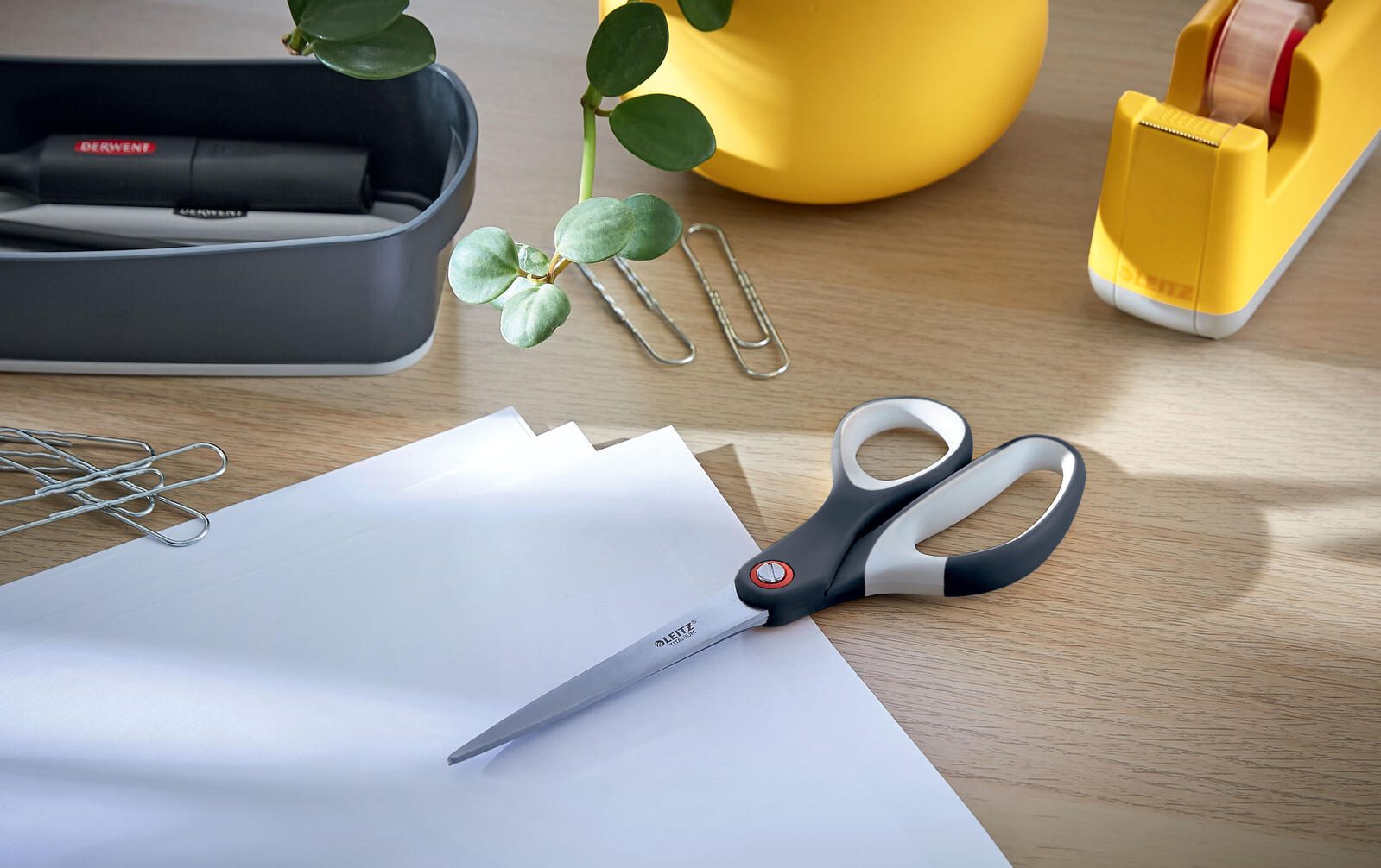 Die LEITZ Papierschere mit einer Länge von 20,5 cm ist das ideale Werkzeug für all deine Schneidbedürfnisse. Mit ihrem eleganten schwarzen Design und der spitzen Form ist sie nicht nur funktional, sondern auch ein stilvolles Accessoire für deinen Arbeitsplatz oder dein Zuhause. Diese Büroschere ist besonders geeignet für das Schneiden von Papier und Stoffen, was sie zu einem vielseitigen Helfer in der Schule, im Büro oder beim Basteln macht. Die Klinge der LEITZ Papierschere besteht aus hochwertigem Stahl, der für seine Langlebigkeit und Schärfe bekannt ist. Dadurch kannst du präzise und saubere Schnitte durchführen, ohne dass das Material ausfranst. Der gummierte Griff sorgt zudem für einen angenehmen Halt und ermöglicht dir ein komfortables Arbeiten, selbst bei längeren Schneidarbeiten. Du wirst die Kontrolle und Stabilität zu schätzen wissen, die dir diese Schere bietet. Die LEITZ Papierschere ist nicht nur funktional, sondern auch ein praktisches Werkzeug, das in keinem Haushalt fehlen sollte. Ihre kompakte Größe macht sie ideal für die Aufbewahrung in Schubladen oder Etuis, während die ansprechende Farbgebung in Schwarz sie zu einem zeitlosen Begleiter macht. Egal, ob du kreative Projekte umsetzt oder wichtige Dokumente zuschneidest, diese Schere wird dir stets treue Dienste leisten. Mit der LEITZ Papierschere 20.5 cm hast du ein zuverlässiges und elegantes Werkzeug an deiner Seite, das dir hilft, deine Ideen in die Tat umzusetzen.Technische Daten