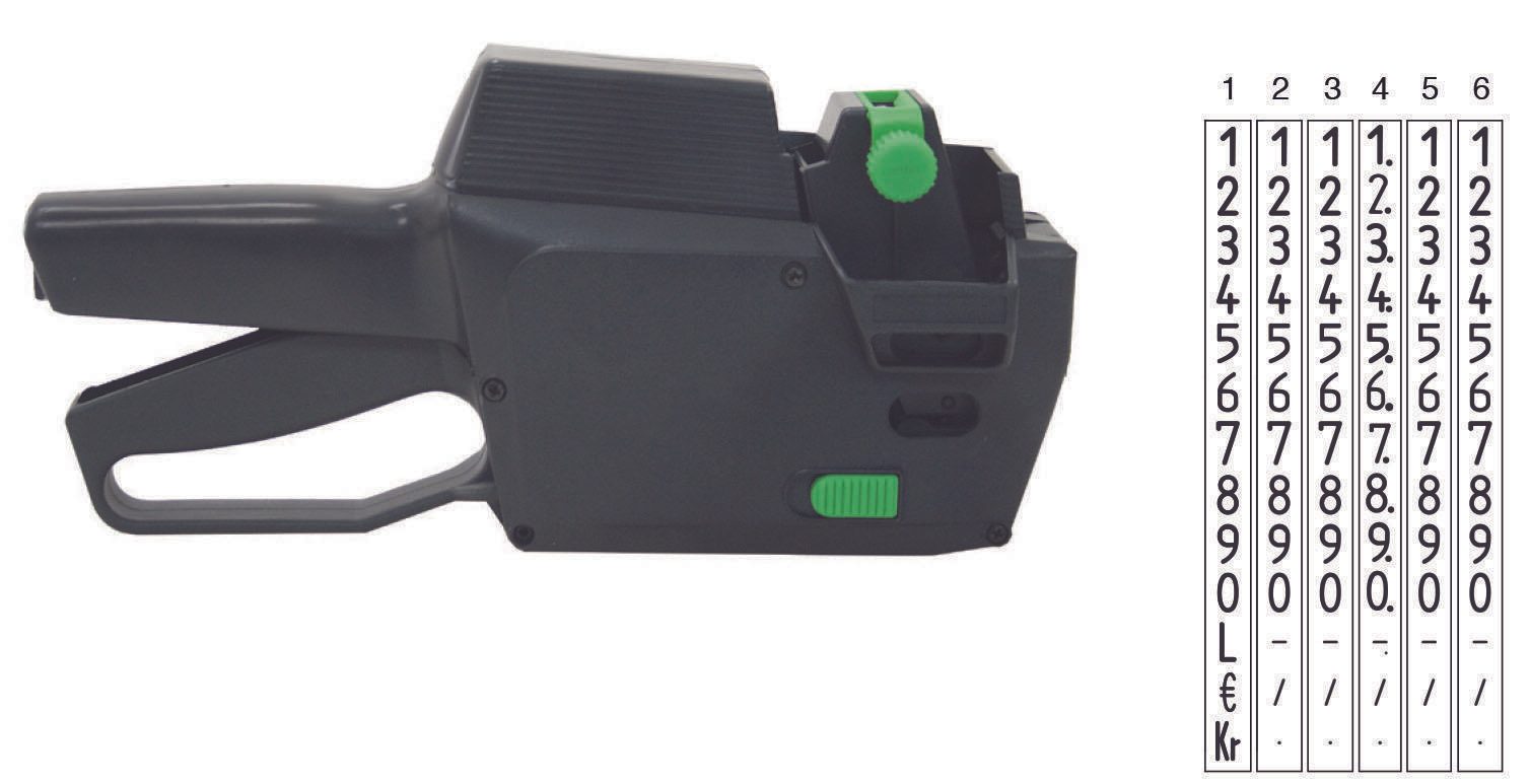 Mit Platz für 6 Zeichen bietet dieser Preisauszeichner genug Raum, um wichtige Informationen klar und präzise zu kennzeichnen. Trotz seiner kompakten Größe und dem Fehlen von Zeilen, ermöglicht er eine effiziente und effektive Beschriftung.