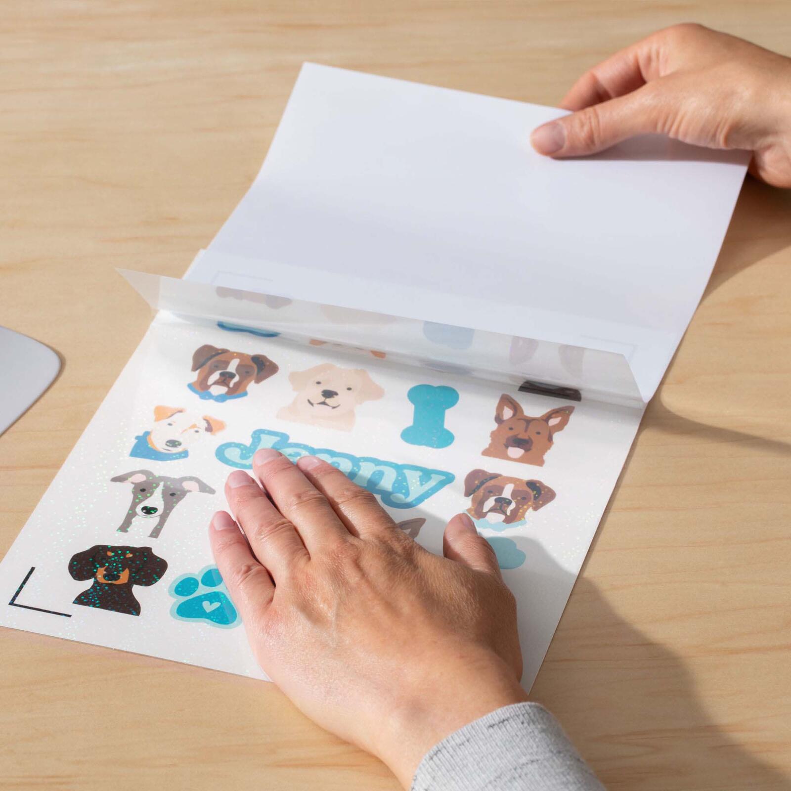 Mit individuellen, kunterbunten, wasserfesten Aufklebern mit Glanzeffekt setzt du ein klares Statement. Sie sind langlebig und bis zu 2 Jahre UV-beständig und sorgen für einen faszinierenden holografischen Effekt – perfekt für Trinkgeschirr, Stoßstangen, Schilder für den Außenbereich und vieles mehr. Jedes Set enthält einen Bogen bedruckbares Vinyl und Vinyl-Laminat. Mit deinem Tintenstrahldrucker bedruckst du das Vinyl mit deinen kunterbunten Aufkleber-Designs. Danach legst du das Vinyl-Laminat über dein Design, glättest es und lässt deine Aufkleber von deiner kompatiblen Cricut Maschine präzise ausschneiden. Nimm für beste Ergebnisse das Druckerpapier aus dem Druckerfach. Lass dann jeweils nur einen Bogen bedruckbares Vinyl nach dem anderen bedrucken.