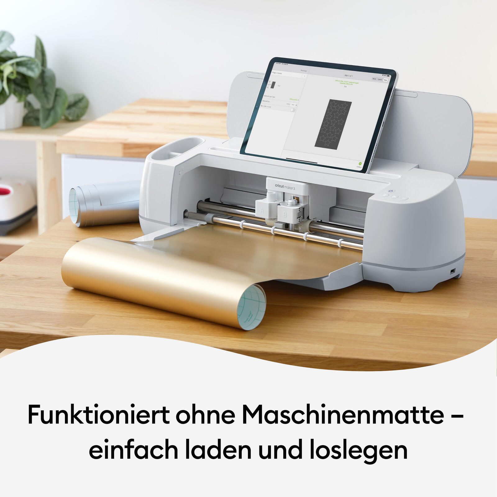 Verleihe großen und kleinen Projekten mit matten, metallischen Effekten nach Lust und Laune etwas Raffinesse. Dieses clevere Bastelmaterial funktioniert ohne Schneidematte – einfach einlegen und loslegen. Es ist jetzt also ein Leichtes, schnell abziehbare Aufkleber für den Laptop zu erstellen oder einen Schriftzug für die Wand zu entwerfen, damit alle wissen, was Sache ist. Designs für fast alle Oberflächen. Für optimale Flexibilität hinterlässt dieses Vinyl keine Rückstände. Egal, ob du auf die winzigen Einzelheiten achtest oder große Gesten vorziehst – du hast alles im Griff.