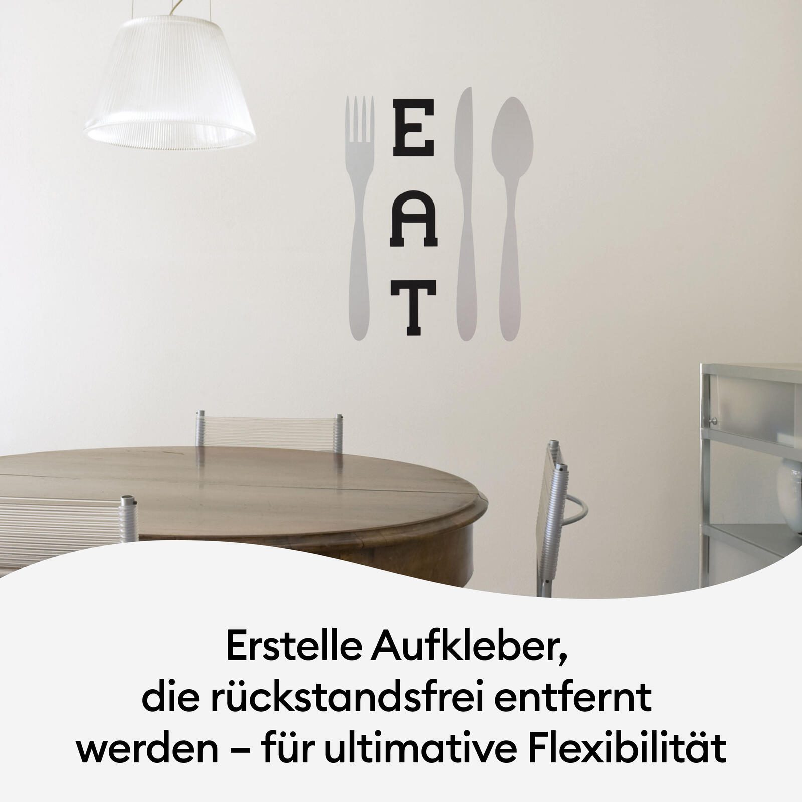Verleihe großen und kleinen Projekten mit matten, metallischen Effekten nach Lust und Laune etwas Raffinesse. Dieses clevere Bastelmaterial funktioniert ohne Schneidematte – einfach einlegen und loslegen. Es ist jetzt also ein Leichtes, schnell abziehbare Aufkleber für den Laptop zu erstellen oder einen Schriftzug für die Wand zu entwerfen, damit alle wissen, was Sache ist. Designs für fast alle Oberflächen. Für optimale Flexibilität hinterlässt dieses Vinyl keine Rückstände. Egal, ob du auf die winzigen Einzelheiten achtest oder große Gesten vorziehst – du hast alles im Griff.