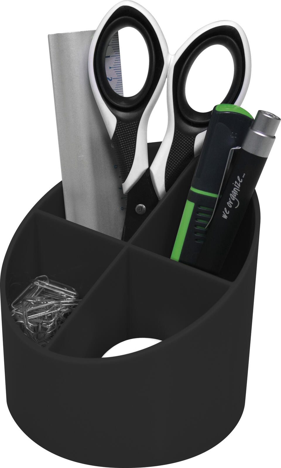 Dieser Stiftehalter besticht nicht nur durch sein modernes Design, sondern auch durch seine praktische Ausführung mit 3 hohen Fächern und einem zusätzlichen Fach für Kleinteile. Hergestellt aus strapazierfähigem Kunststoff in eleganter Schwarzoptik, vereint er Stil und Funktionalität in einem Produkt.