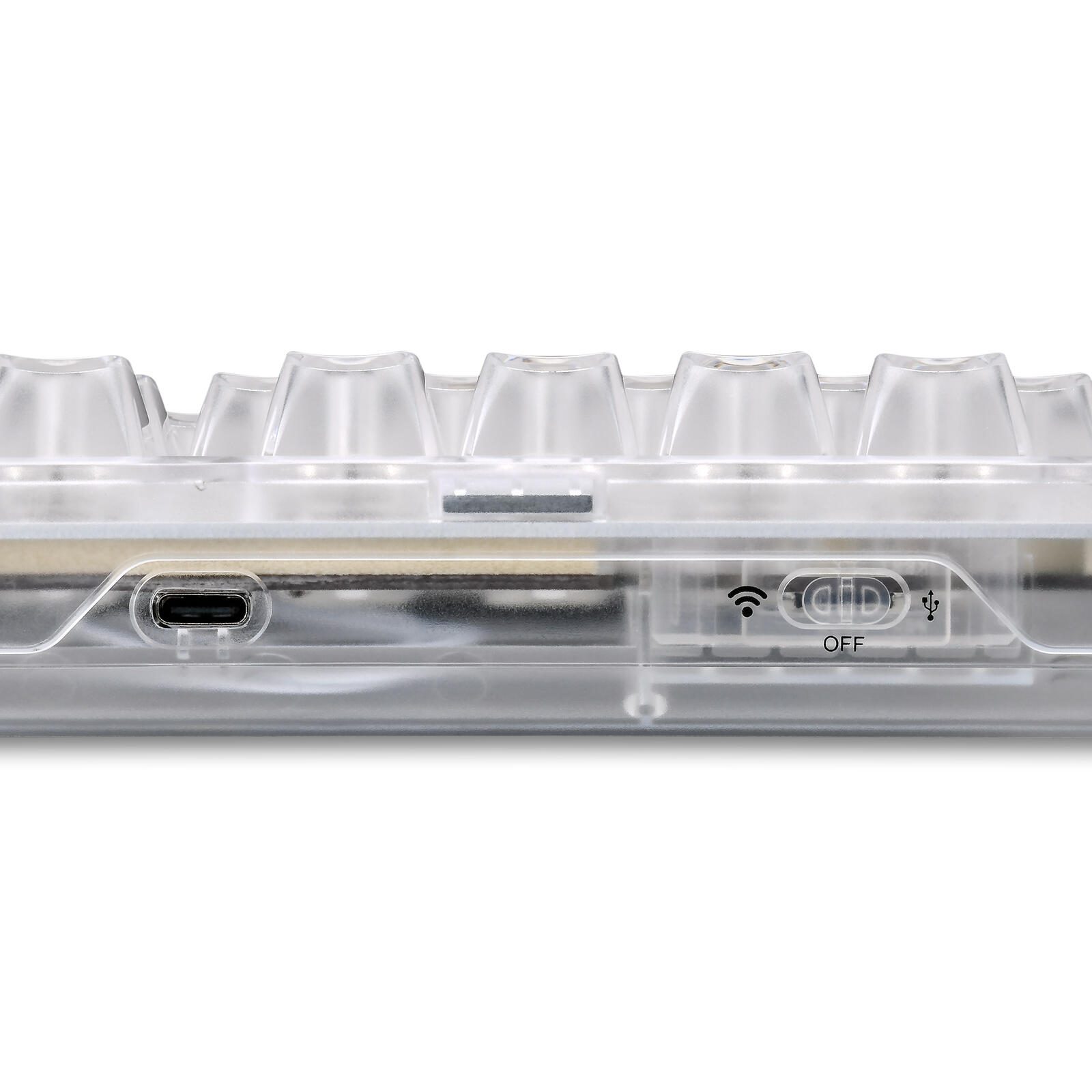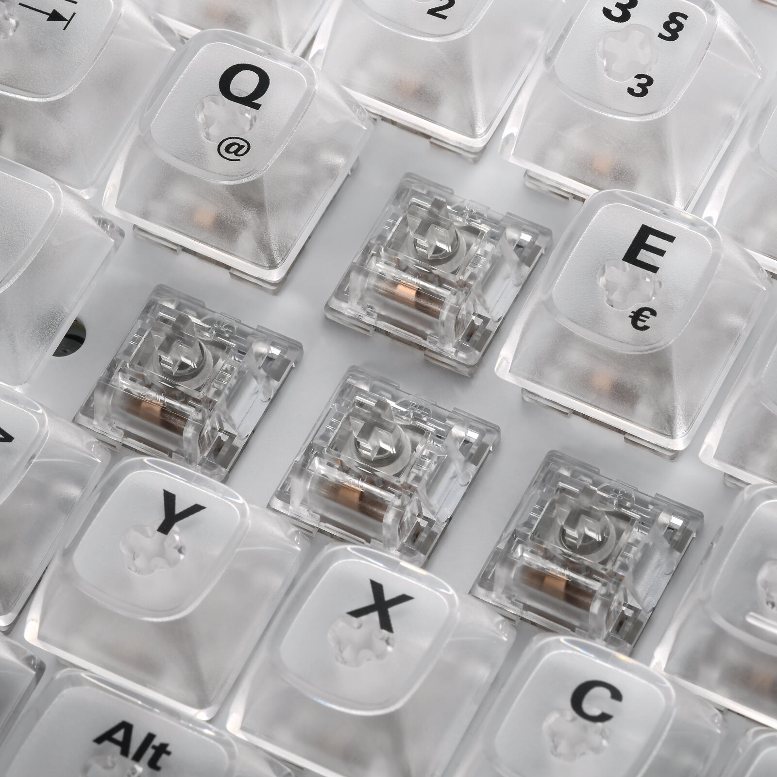 Kristallklares Design und vollgestopft mit Features – das ist unser Crystal Shark. Die Tastatur im transparenten Design und kompaktem TKL-Layout lässt sich für maximale Freiheit beim Gamen sowohl mit Kabel als auch kabellos betreiben. Zudem lässt sich das Design und das Tippgefühl dank einer magnetischen Gehäuseabdeckung und schnellwechselbarer Schalter einfach personalisieren. RGB-Beleuchtung ohne Software natürlich inklusive!