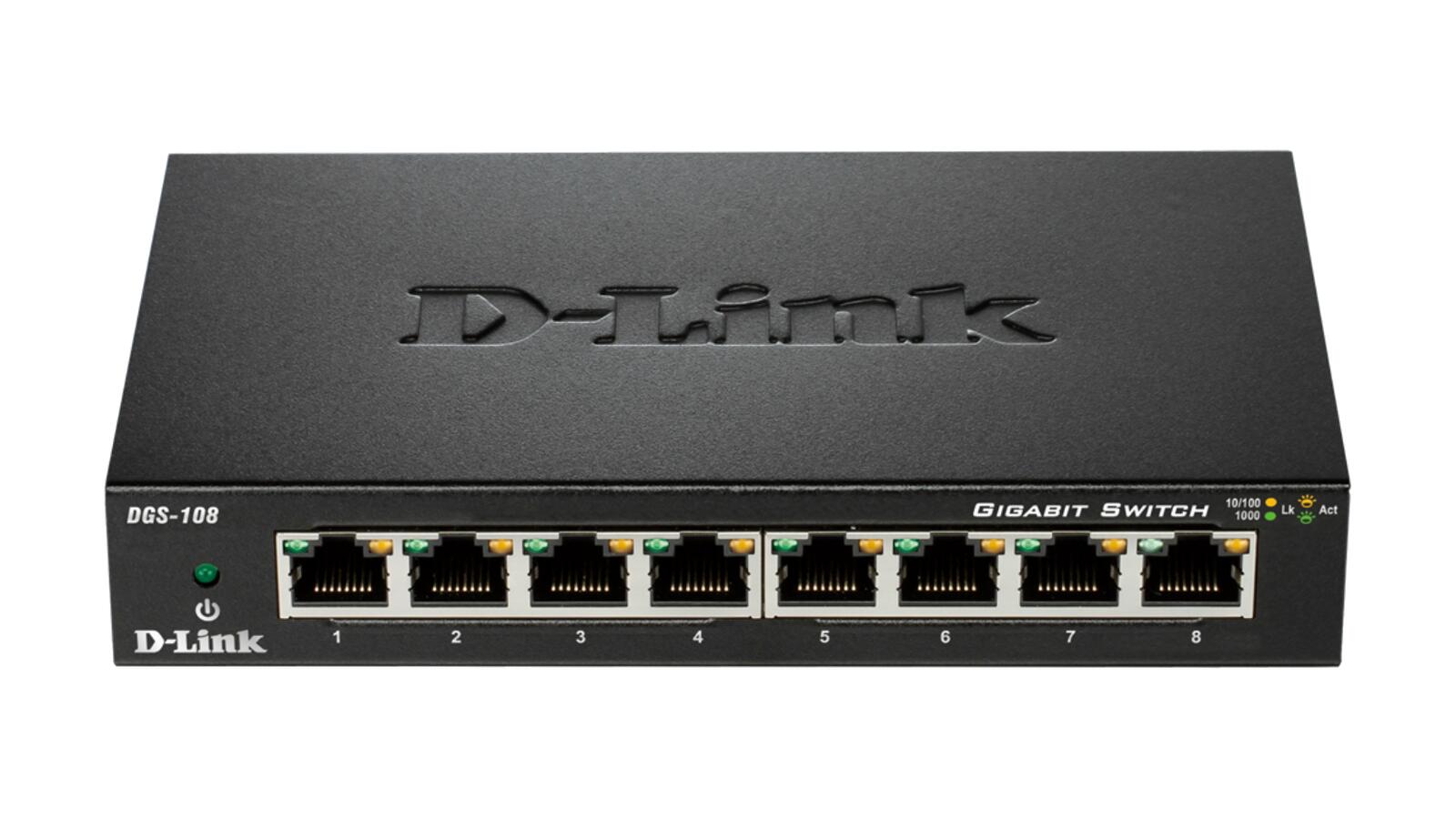 D-Link DGS-108 8-Port Gigabit Desktop Switch mit Metallgehäuse (DGS-108/E)