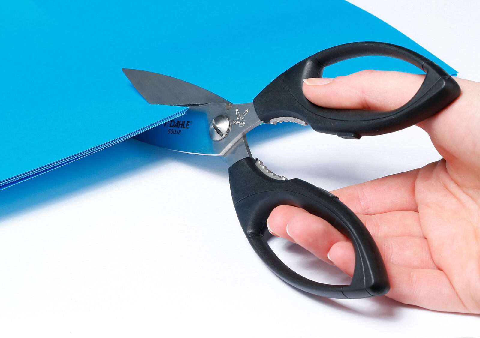 Die DAHLE Schere 21 cm ist das ideale Werkzeug für alle, die Wert auf Präzision und Qualität legen. Mit ihrem eleganten Design in klassischem Schwarz fügt sich diese Haushaltsschere perfekt in jede Umgebung ein. Die spitzen Klingen aus hochwertigem Stahl garantieren ein müheloses Schneiden von verschiedenen Materialien wie Stoff, Papier und Folie. Egal, ob du kreative Bastelprojekte umsetzen oder einfach nur alltägliche Aufgaben im Haushalt erledigen möchtest, diese Schere ist vielseitig einsetzbar und erfüllt all deine Anforderungen. Der ergonomisch gestaltete Griff aus robustem Kunststoff sorgt für einen komfortablen Halt und ermöglicht ein ermüdungsfreies Arbeiten, selbst bei längeren Schneidarbeiten. Mit einer Länge von 21 cm ist die DAHLE Schere handlich und leicht zu verstauen, während sie gleichzeitig die nötige Stabilität und Kontrolle bietet. Dank ihrer hochwertigen Verarbeitung und der durchdachten Materialwahl ist die DAHLE Schere nicht nur langlebig, sondern auch besonders pflegeleicht. Sie ist für den täglichen Gebrauch konzipiert und eignet sich hervorragend für alle, die eine zuverlässige und effiziente Lösung für ihre Schneidbedürfnisse suchen. Die DAHLE Schere 21 cm ist ein unverzichtbares Werkzeug für jeden Haushalt und bietet dir die Möglichkeit, deine kreativen Ideen problemlos umzusetzen. Mit dieser Schere genießt du die Freiheit, alles zu schneiden, was du benötigst, ohne Kompromisse bei der Qualität einzugehen. Vertraue auf die Expertise von DAHLE und erlebe, wie einfach und angenehm das Schneiden sein kann.Technische Daten