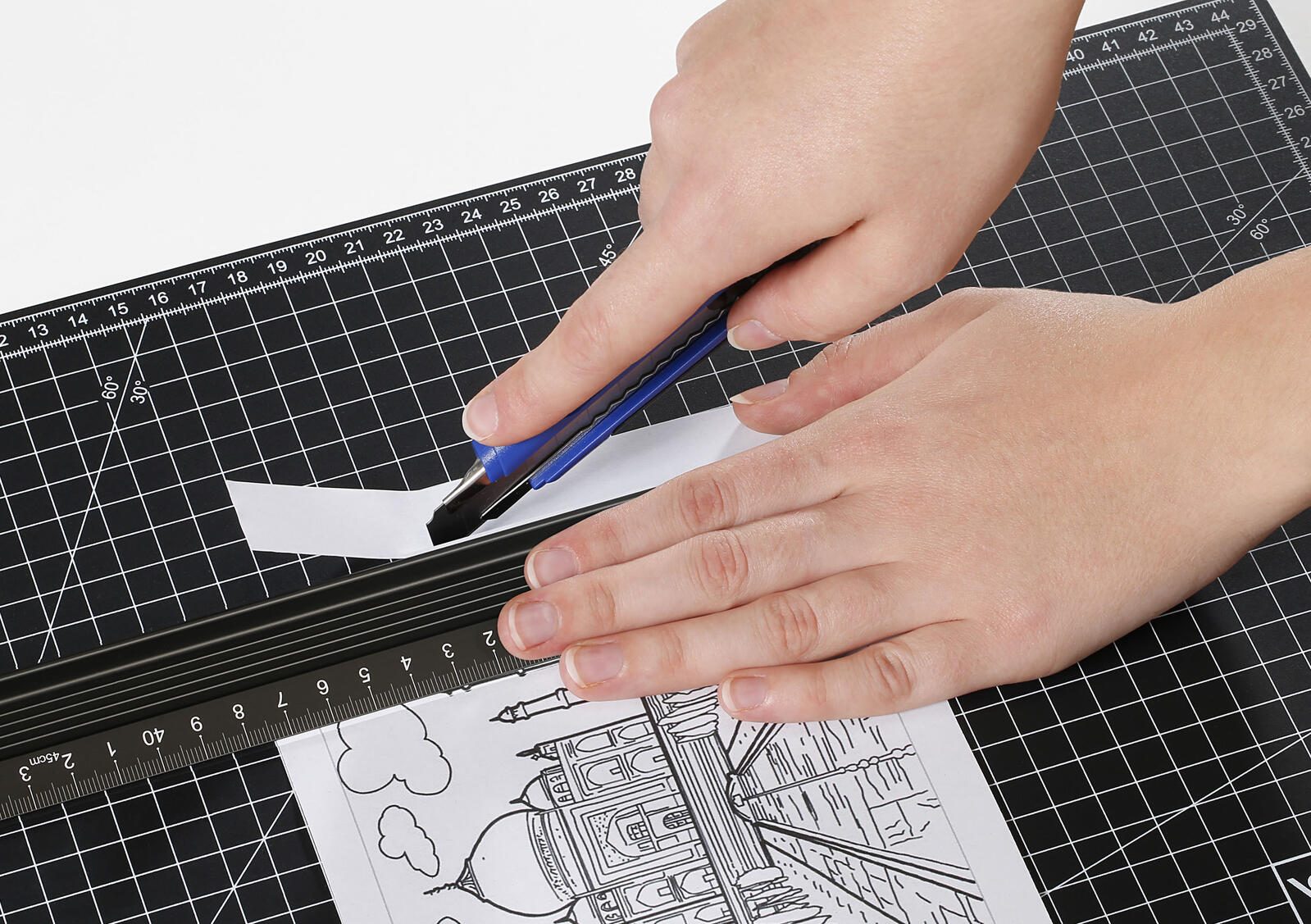 Die DAHLE Vantage Schneidematte in der Größe 30,0 x 45,0 cm ist die ideale Lösung für alle, die präzises Arbeiten mit verschiedenen Materialien schätzen. Hergestellt aus hochwertigem Kunststoff, bietet diese Schneidematte eine langlebige und robuste Oberfläche, die sich perfekt für das Schneiden von Papier und anderen Materialien eignet. Mit ihrer ansprechenden schwarzen Farbe fügt sie sich harmonisch in jede kreative Umgebung ein und sorgt für einen professionellen Look. Die Schneidematte ist speziell für Formate bis A3 konzipiert, was sie vielseitig einsetzbar macht. Egal, ob du für dein nächstes Bastelprojekt, für das Büro oder für kreative Hobbys wie Scrapbooking arbeitest, die DAHLE Vantage Schneidematte bietet die nötige Unterstützung. Die praktischen Maßstäbe mit Winkeln von 45°, 15° und 75° ermöglichen dir präzise Schnitte und erleichtern das Arbeiten mit verschiedenen Designs und Formen. Mit einer Größe von 30,0 x 45,0 cm ist diese Matte handlich und leicht zu verstauen, sodass sie immer griffbereit ist, wenn du sie benötigst. Die glatte Oberfläche sorgt dafür, dass das Schneiden mühelos von der Hand geht, während die rutschfeste Unterseite Stabilität während des Gebrauchs gewährleistet. Die DAHLE Vantage Schneidematte ist nicht nur funktional, sondern auch ein stilvolles Werkzeug, das in keinem kreativen Arbeitsbereich fehlen sollte. Ob du ein erfahrener Bastler bist oder gerade erst anfängst, diese Schneidematte wird dir helfen, deine Projekte mit Leichtigkeit und Präzision zu verwirklichen.Technische Daten
