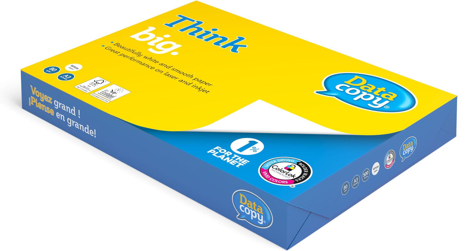 Wähle das Data copy Kopierpapier DIN A3 80 g/m² für deine täglichen Druckanforderungen und erlebe die Kombination aus Qualität, Umweltbewusstsein und hervorragender Druckleistung.