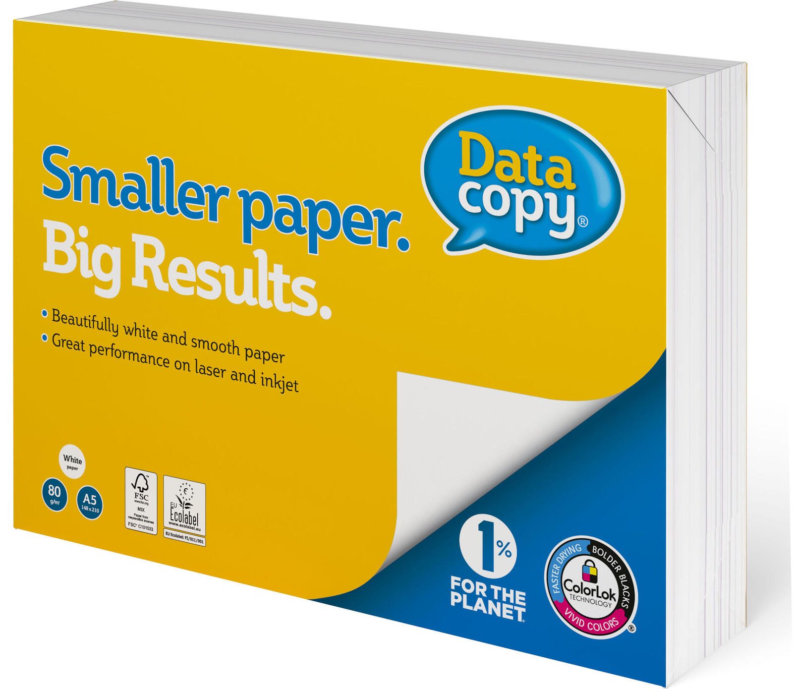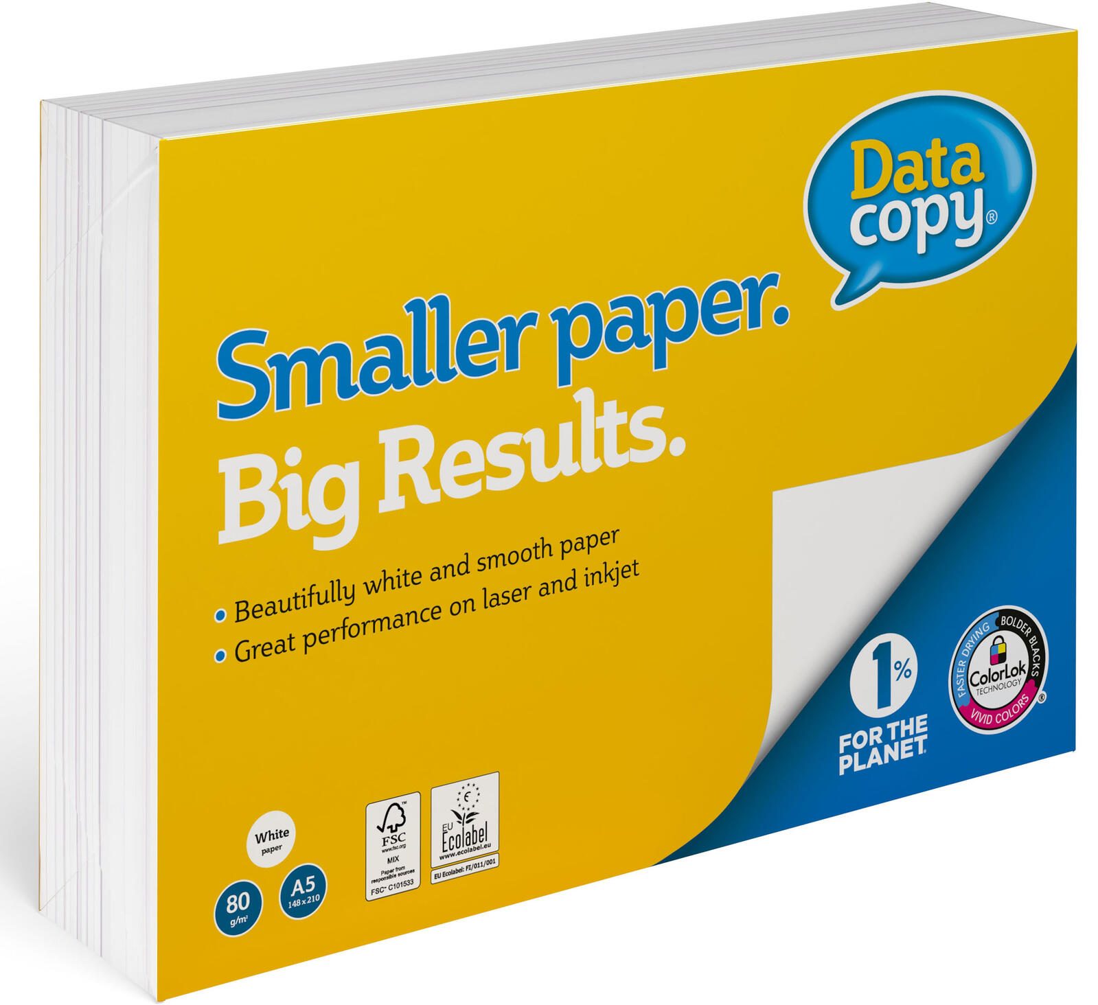 Das Data copy Kopierpapier DIN A5 80 g/m² ist die optimale Wahl für alle, die Wert auf Qualität und Zuverlässigkeit legen. Mit einem hochweißen Farbton und einem CIE-Wert von 170 sorgt dieses Papier für beeindruckende Druckergebnisse, die sowohl im beruflichen als auch im privaten Umfeld überzeugen. Die matte Oberfläche des Papiers garantiert eine hervorragende Farbwiedergabe und eine hohe Opazität von 94,5, was bedeutet, dass deine Ausdrucke klar und professionell wirken. Dieses Kopierpapier ist speziell für den Einsatz in verschiedenen Druck- und Kopiersystemen konzipiert. Egal, ob du einen Laser- oder Inkjet-Drucker verwendest, das Data copy Kopierpapier liefert stets gleichbleibend gute Resultate. Die bedruckbare Fläche ermöglicht es dir, deine Dokumente, Präsentationen oder kreative Projekte in höchster Qualität zu gestalten. Mit einem Papiergewicht von 80 g/m² ist das Papier robust und dennoch leicht zu handhaben. Es eignet sich hervorragend für den täglichen Gebrauch, sei es im Büro, in der Schule oder zu Hause. Jedes Pack enthält 500 Blatt, sodass du bestens ausgestattet bist, um deinen Druckbedarf zu decken. Das Data copy Kopierpapier ist zudem umweltschonend hergestellt und wird elementar chlorfrei gebleicht (ECF), was es zu einer umweltfreundlichen Wahl macht. Es ist zudem holzfrei, was den nachhaltigen Charakter des Produkts unterstreicht. Vertraue auf Data copy, um deine Druckprojekte in bester Qualität zu realisieren.Technische Daten