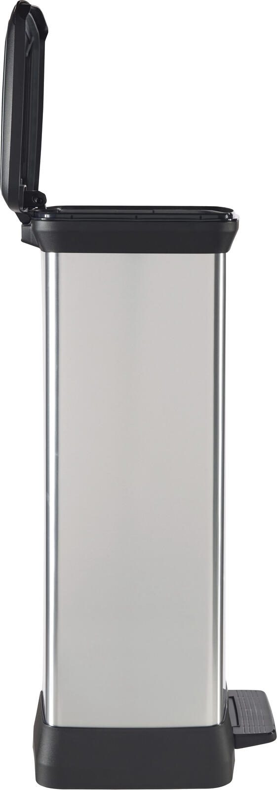 Der curver Mülleimer 50,0 l in edlem silbermetallic vereint Funktionalität und modernes Design auf perfekte Weise. Mit einem großzügigen Fassungsvermögen von 50 Litern ist dieser Mülleimer ideal für den Einsatz im Innenbereich, sei es in der Küche, im Büro oder in anderen Wohnräumen. Der schicke Farbton silbermetallic fügt sich harmonisch in jede Einrichtung ein und sorgt für einen stilvollen Akzent. Ein herausragendes Merkmal dieses Mülleimers ist der praktische Tretmechanismus, der eine hygienische und bequeme Handhabung ermöglicht. Mit nur einem Fußtritt öffnest du den Klappdeckel mühelos, ohne die Hände zu benutzen, was besonders in der Küche von Vorteil ist, wenn du mit Lebensmitteln hantierst. Der Klappdeckel schließt sicher und sorgt dafür, dass unangenehme Gerüche im Inneren bleiben. Der curver Mülleimer besteht aus hochwertigem Kunststoff, der nicht nur langlebig, sondern auch leicht zu reinigen ist. Der Inneneimer erleichtert das Entleeren und Reinigen, sodass du immer einen sauberen und frischen Mülleimer hast. Die durchdachte Konstruktion und das ansprechende Design machen diesen Mülleimer zu einer praktischen und stilvollen Ergänzung für dein Zuhause. Der curver Mülleimer DECOBIN ist mehr als nur ein Behälter für Abfälle; er ist ein funktionales Möbelstück, das deinem Wohnraum einen modernen Touch verleiht. Mit diesem Mülleimer entscheidest du dich für Qualität, die sowohl optisch als auch praktisch überzeugt.Technische Daten