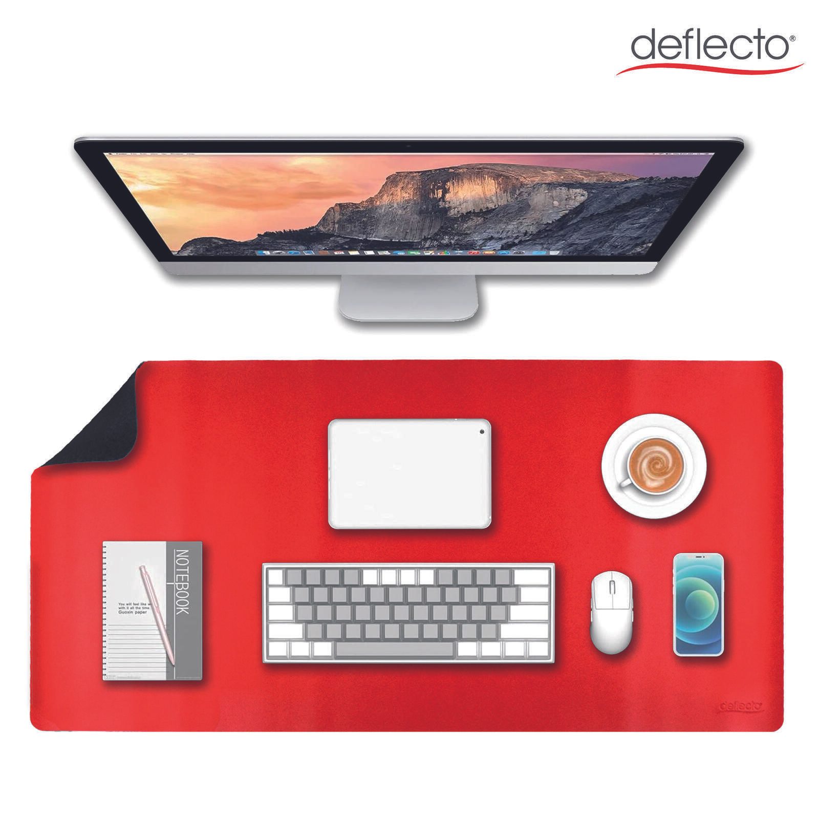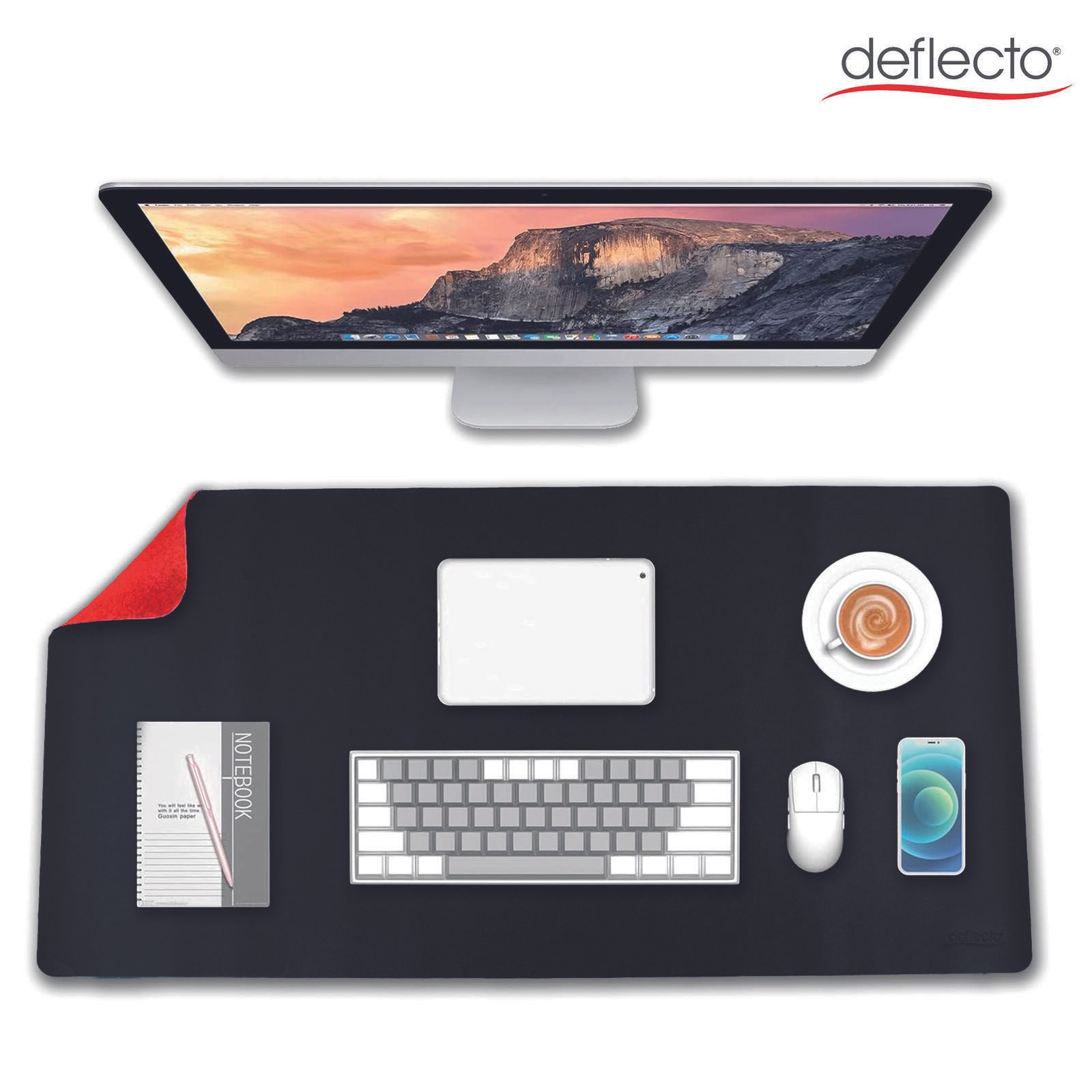 Die doppelseitige Schreibtischunterlage von deflecto verbindet Funktionalität mit einem modernen Design in den Farben Schwarz und Rot. Mit den großzügigen Maßen von 120 x 60 cm bietet sie ausreichend Platz, um Ihren Arbeitsplatz optimal zu schützen und zu organisieren. Hergestellt aus hochwertigem Kunstleder, zeichnet sich die Unterlage durch ihre wasserabweisende Oberfläche aus, die das Abwischen von Flüssigkeiten und Verschmutzungen besonders einfach macht. Dadurch bleibt Ihr Schreibtisch stets sauber und gepflegt.