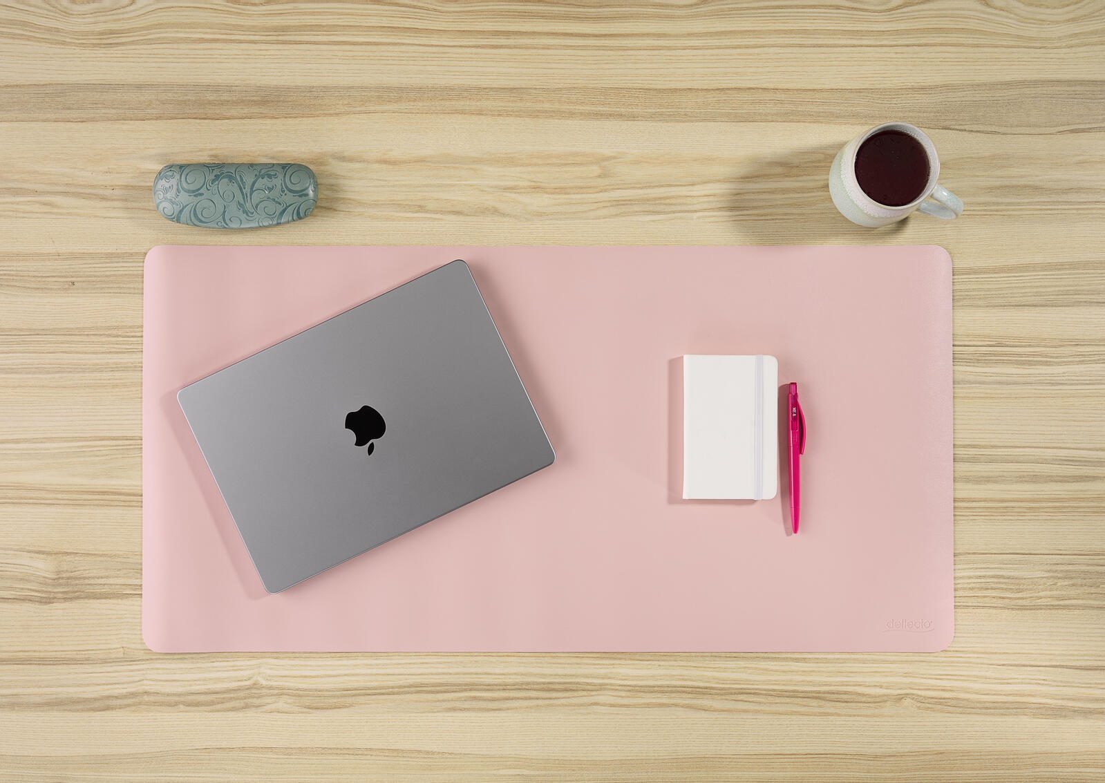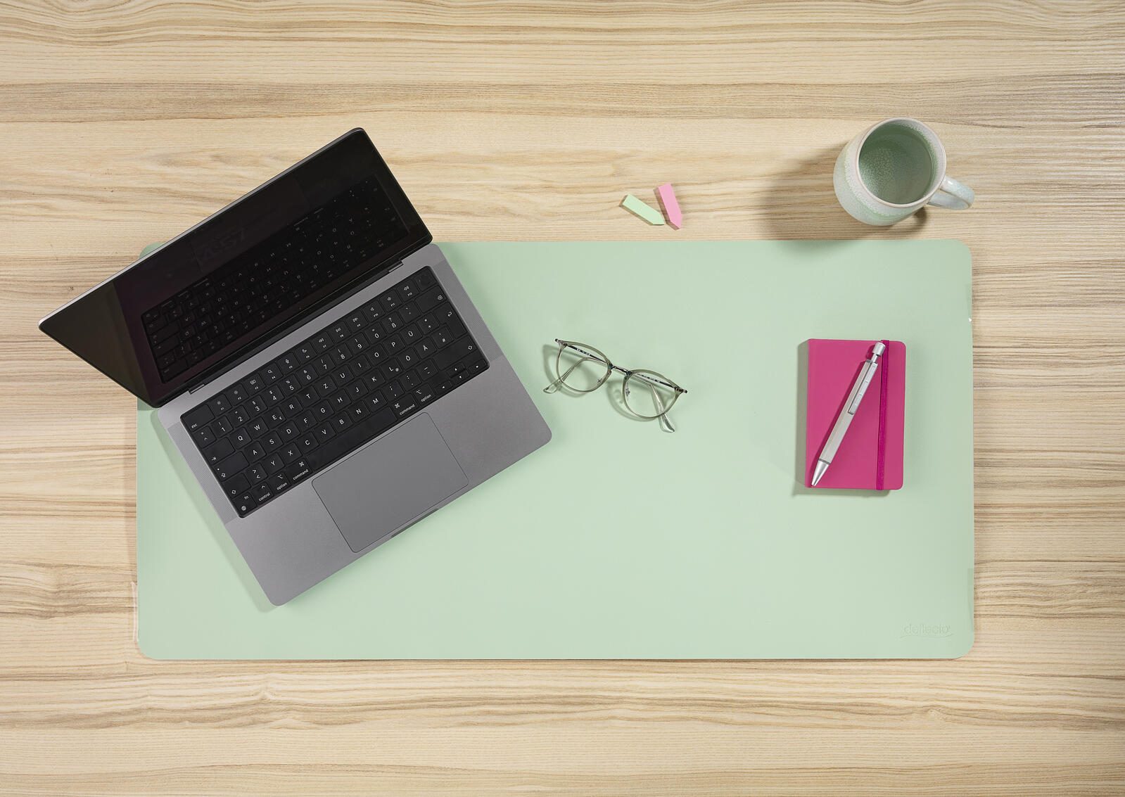 Das besondere Design mit zwei Farbtönen – grün und rosa – ermöglicht eine individuelle Gestaltung Ihres Schreibtischbereichs, indem Sie die Seite je nach Stimmung oder Einrichtung auswählen können. Neben dem ästhetischen Vorteil sorgt das Material für eine angenehme Haptik und schützt die Schreibtischoberfläche zuverlässig vor Kratzern, Flecken und anderen Beschädigungen.