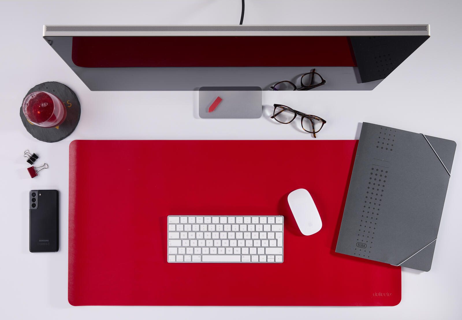 Die deflecto Schreibtischunterlage überzeugt durch ihre doppelseitige Nutzungsmöglichkeit und das ansprechende Design in den Farben Schwarz und Rot. Mit den Maßen von 80,0 x 40,0 cm bietet sie eine großzügige Fläche, die Ihren Schreibtisch optimal schützt und gleichzeitig für Ordnung sorgt. Das hochwertige Kunstleder sorgt nicht nur für eine edle Optik, sondern macht die Unterlage auch besonders pflegeleicht. Sie ist abwaschbar, wasserdicht und dank der rutschfesten Unterseite fest an ihrem Platz, sodass ein Verrutschen während der Arbeit zuverlässig verhindert wird.