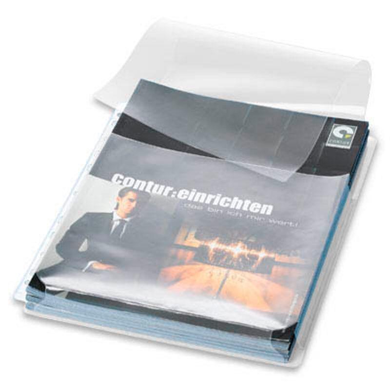 Die EICHNER Dokumentenhülle A4 transparent bietet eine ideale Lösung für die sichere Aufbewahrung und den Transport deiner Dokumente. Mit ihrer transparenten Farbe ermöglicht sie eine schnelle Identifikation des Inhalts, wodurch du jederzeit den Überblick behältst. Diese Dokumentenhülle ist aus hochwertigem PVC gefertigt und zeichnet sich durch ihre Langlebigkeit und Robustheit aus, was sie zur perfekten Wahl für den täglichen Gebrauch macht. Die Ausführung mit Klappe und seitlich verstärktem Abheftstreifen sorgt dafür, dass deine Unterlagen zuverlässig geschützt sind und nicht herausrutschen. Die Öffnung an der Oberseite erleichtert das Einlegen und Entnehmen von Dokumenten, während die Universal-Lochung eine flexible Ablage in Ordnern oder Mappen ermöglicht. Egal, ob du wichtige Unterlagen für die Arbeit, Schule oder persönliche Zwecke transportierst, diese Dokumentenhülle ist vielseitig einsetzbar und bietet den optimalen Schutz. Ein Pack enthält 10 Stück, sodass du ausreichend Vorrat hast, um deine Dokumente ordentlich und sicher zu organisieren. Die EICHNER Dokumentenhülle ist nicht nur funktional, sondern auch praktisch, da sie sich hervorragend für die Ablage und den Transport eignet. Mit dieser Dokumentenhülle hast du eine zuverlässige Lösung zur Hand, um deine Unterlagen jederzeit in einwandfreiem Zustand zu halten.Technische Daten