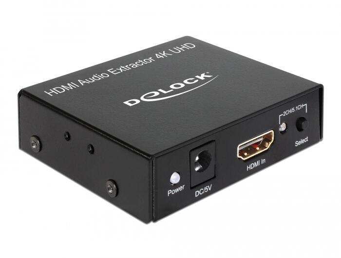 Mit diesem Adapter von Delock kann aus einer HDMI Übertragung das Audiosignal ausgekoppelt werden. Während das Bildsignal auf einem TV oder Monitor dargestellt wird, kann das Audiosignal digital (S/PDIF) oder analog (Stereo) an andere Geräte, wie z. B. Kopfhörer oder Surround Receiver, ausgegeben werden.