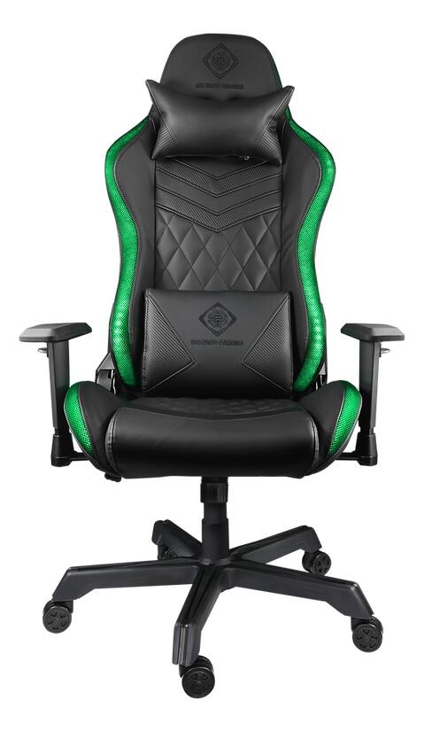 Schaffen Sie Gaming-Atmosphäre mit RGB-Beleuchtung per Bank oder USB. Tauchen Sie ein in 332 RGB-Modi. RGB-Gaming-Stuhl aus Kunstleder mit ergonomischen Features, die an Rallye-Rennsitze erinnern! Dank hoher Rückenlehne und zusätzlichen Kissen für Nacken- und Lendenwirbelstütze vermeiden Sie auch nach stundenlangem Sitzen Rücken- und Nackenprobleme. Selbstverständlich ist der Stuhl höhenverstellbar, ebenso wie die Armlehnen. Auch die Rücken- und Nackenkissen lassen sich für eine optimale Passform anpassen.