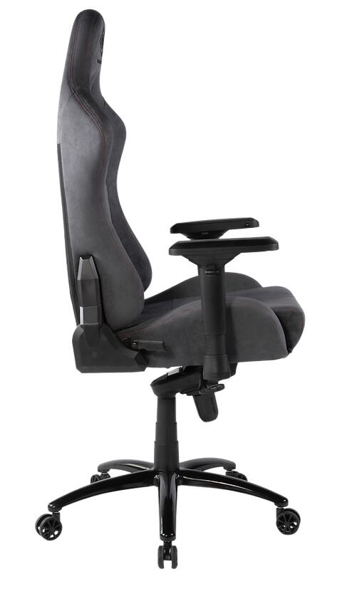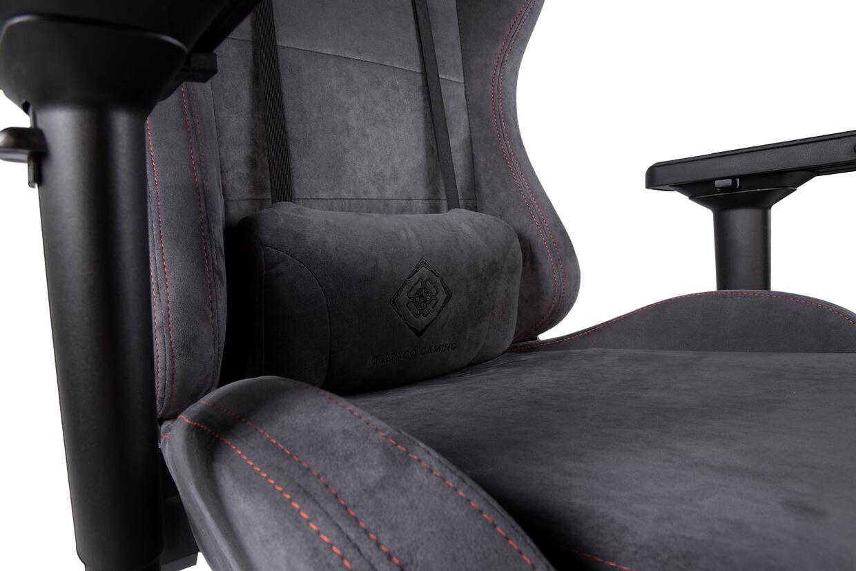 Gaming-Stuhl aus weichem Alcantara-Stoff mit ergonomischen Ähnlichkeiten zu einem Rennstuhl. Mit hoher Rückenlehne und zusätzlichen Kissen für Kopfstütze und Rückenlehne vermeiden Sie Rücken- und Nackenprobleme nach unzähligen Stunden in diesem Stuhl. Der Stuhl ist selbstverständlich höhenverstellbar, ebenso wie die Armlehnen. Auch die Kissen für Rücken und Nacken lassen sich für eine optimale Passform anpassen.