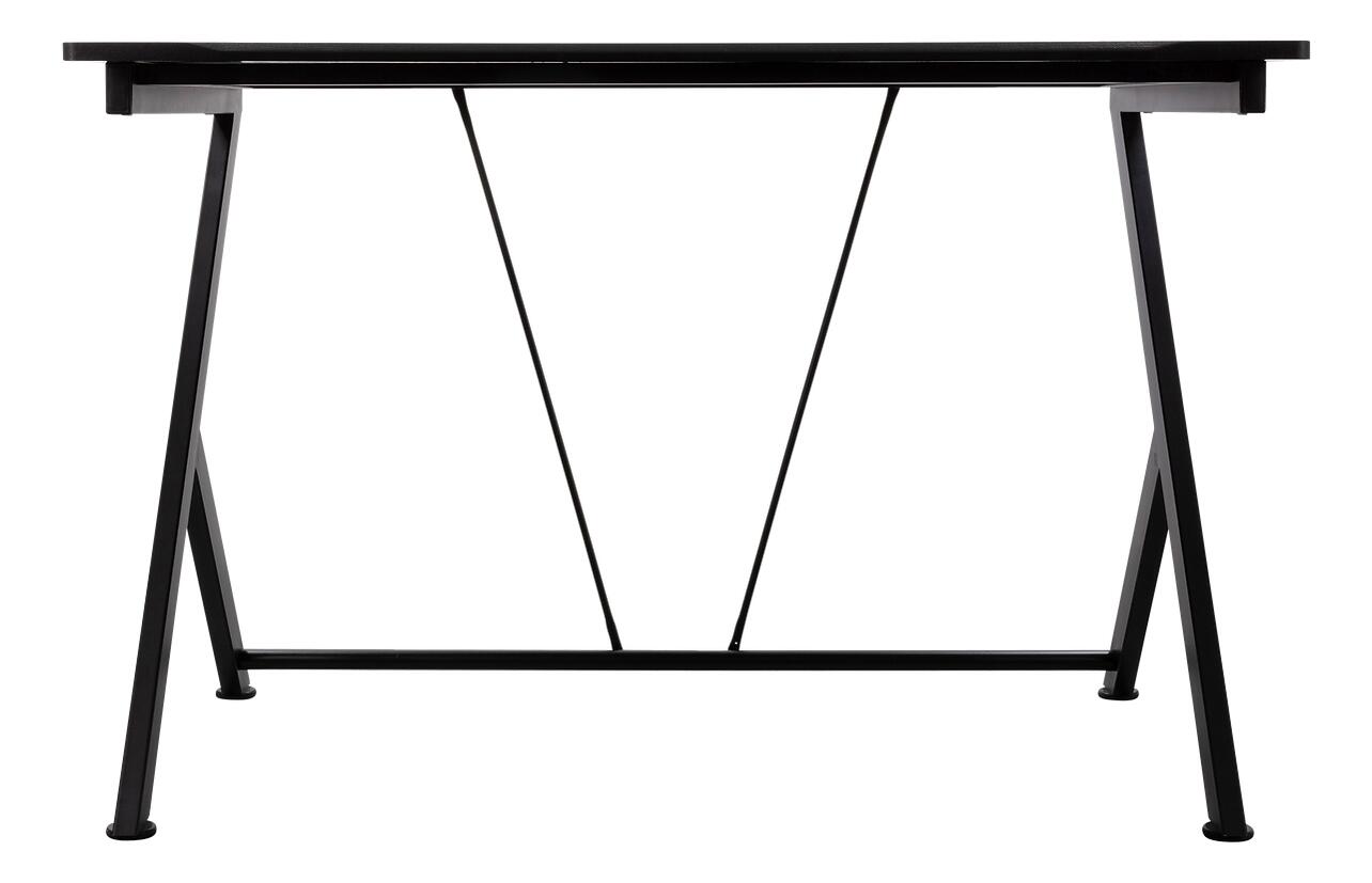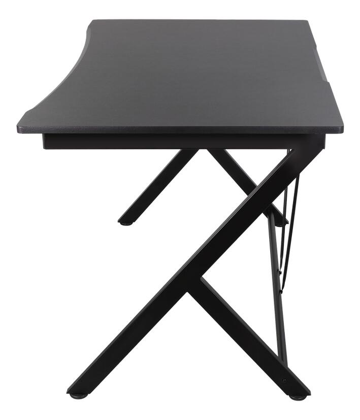 Schlichter und dennoch stilvoller Gaming-Tisch für echte Gamer. Die Tischplatte ist mit einer PVC-Beschichtung versehen. Rechts darunter befindet sich eine integrierte Halterung für ein Headset. Die dünne Tischplatte erleichtert die Montage von Mikrofonarm und Bildschirmen. Die massiven Metallbeine machen den Tisch robust und ermöglichen die problemlose Platzierung Ihres Computers.