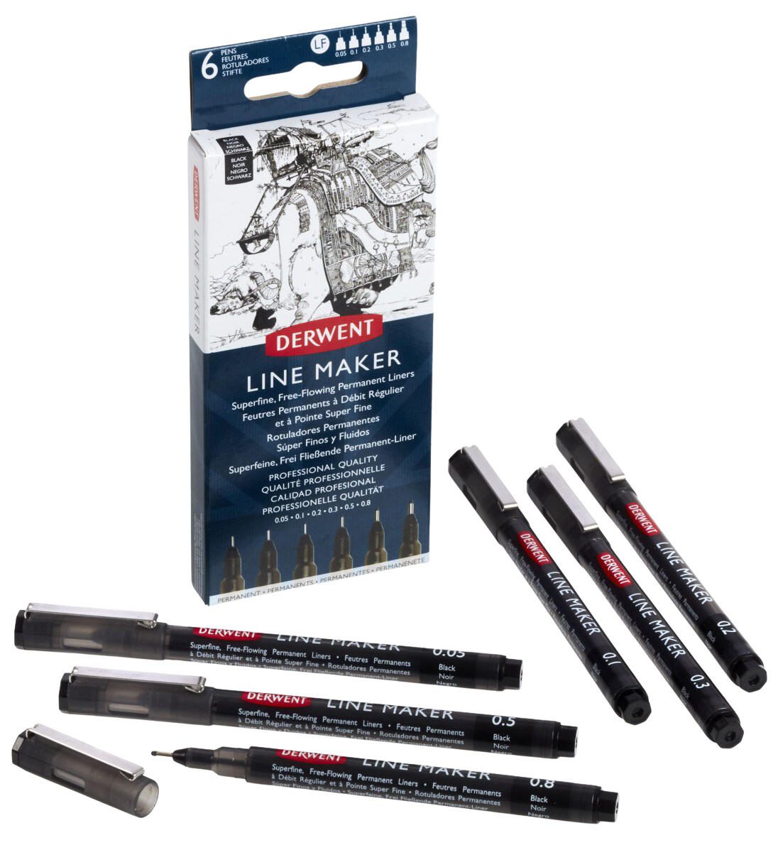 DERWENT Line Maker Fineliner-Set Schwarz 1 Pack = 6 St.