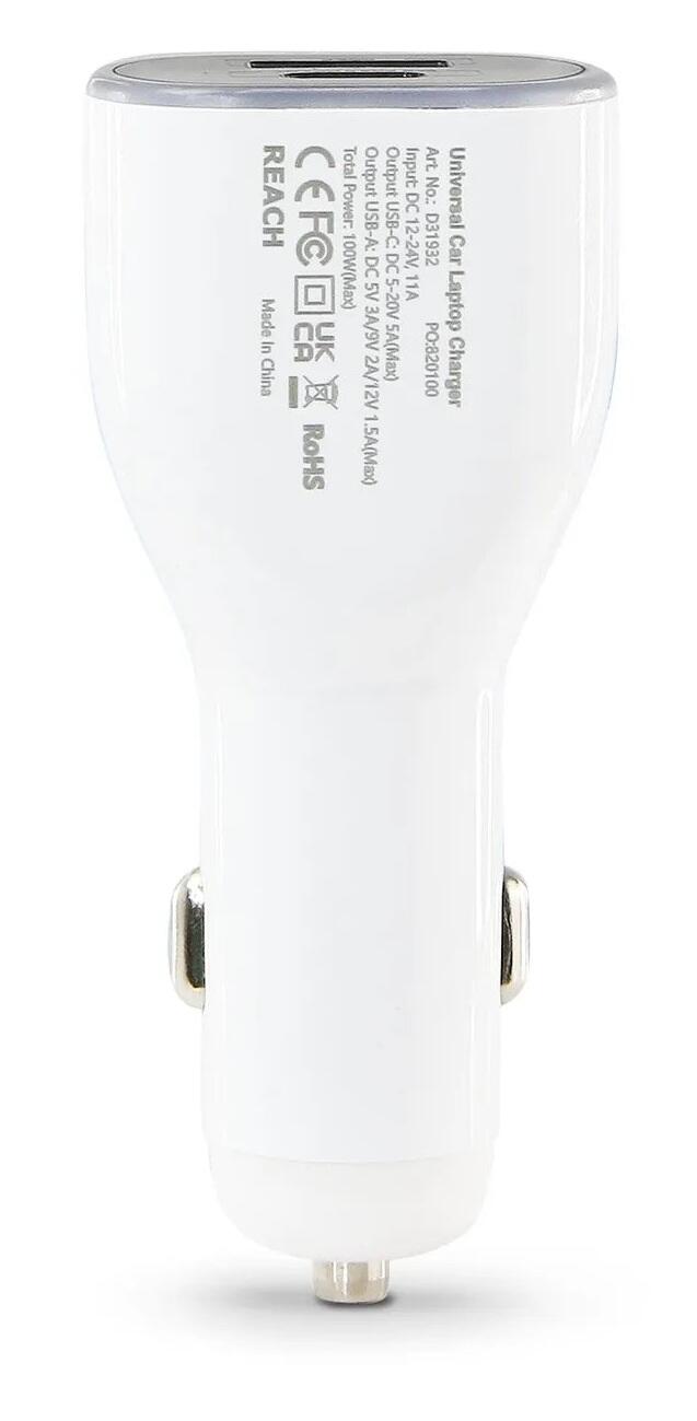 Power USB-C- und USB-A-Ausgang mit Qualcomm Quick Charge 3.0-Standard – gleichzeitig nutzbar für die meisten mobilen Zubehörgeräte. Schnelles Laden mit bis zu 100 W Leistung inklusive 1,2 m langem E-Marker-USB-C-Kabel. Damit ist das Universal Car Notebook Charger der perfekte Companion für schnelle Energie unterwegs.