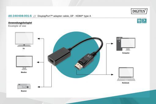 DIGITUS DisplayPort-Adapterkabel - DisplayPort / HDMI 0,15m m/interlock, DP 1.1a komp., CE, schwarz, AK-340408-001-S