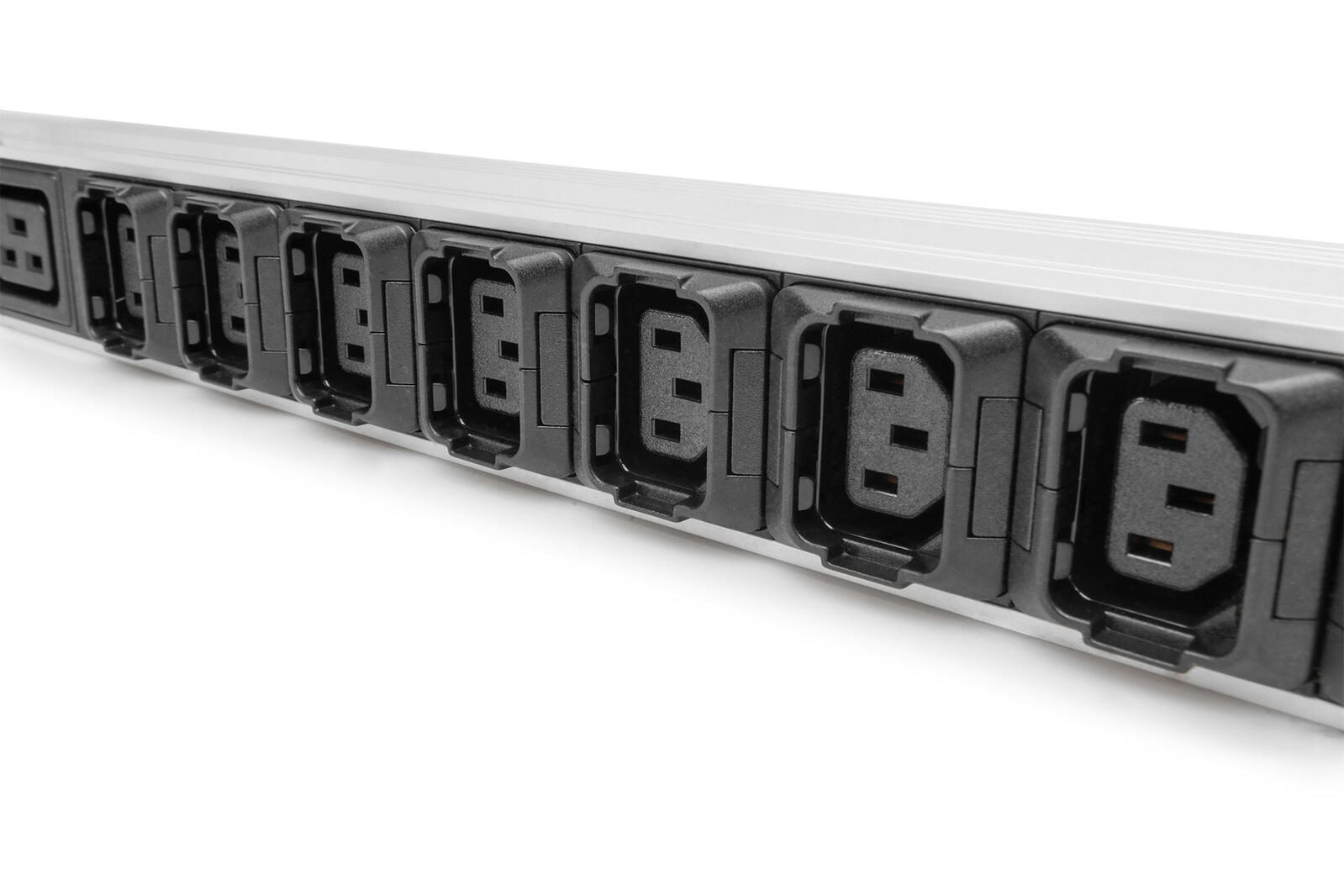 Die DIGITUS® Steckdosenleisten sind die perfekte Lösung für Ihren Netzwerk- oder Serverschrank. Hinsichtlich der Stromverteilung erfüllt die PDU Anforderungen vieler Anwendungen in der IT, Netzwerktechnik und Labore. Die einzelnen C13 und C19 - Ausgänge sind mit einem Ausziehschutz ausgestattet. Sie ist für den vertikalen Einbau konzipiert, dies spart Höheneinheiten und bietet mehr Platz für weitere Geräte. Die Steckdosenleiste mit 27 Ausgängen verfügt über exzellente physikalische Eigenschaften und ist für eine Leistung von bis zu 4.000 W (250VAC / 16A) ausgelegt, wodurch bei entsprechender Belastung die beste Performance erzielt werden kann.
