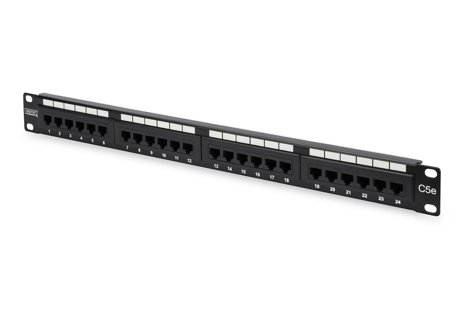 Das ungeschirmte CAT 5e Patch Panel von DIGITUS® ist erhältlich als 16- oder 24-Port (1 Höheneinheit) oder 48-Port Version (2 Höheneinheiten). Das Gehäuse ist aus 1,5 mm galvanisiertem kaltgewalzten Stahl hergestellt und somit perfekt für die 19" Schrankmontage geeignet.