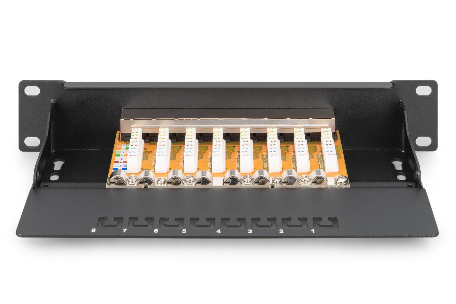 Die CAT 6 Patch Panel für 254 mm (10") Rackmontage von DIGITUS® sind gefertigt nach Link Performance Klasse E, für bis zu 250 MHz, ISO/IEC 11801 und EN 50173. Kabelinstallation erfolgt über die LSA-Leisten, welche nach EIA/TIA 568B farbcodiert sind. Das Gehäuse besteht aus galvanisiertem kaltgewalztem Stahl gem. EN1.4301, UNS S30400, AISI 304 und LMSAD110.