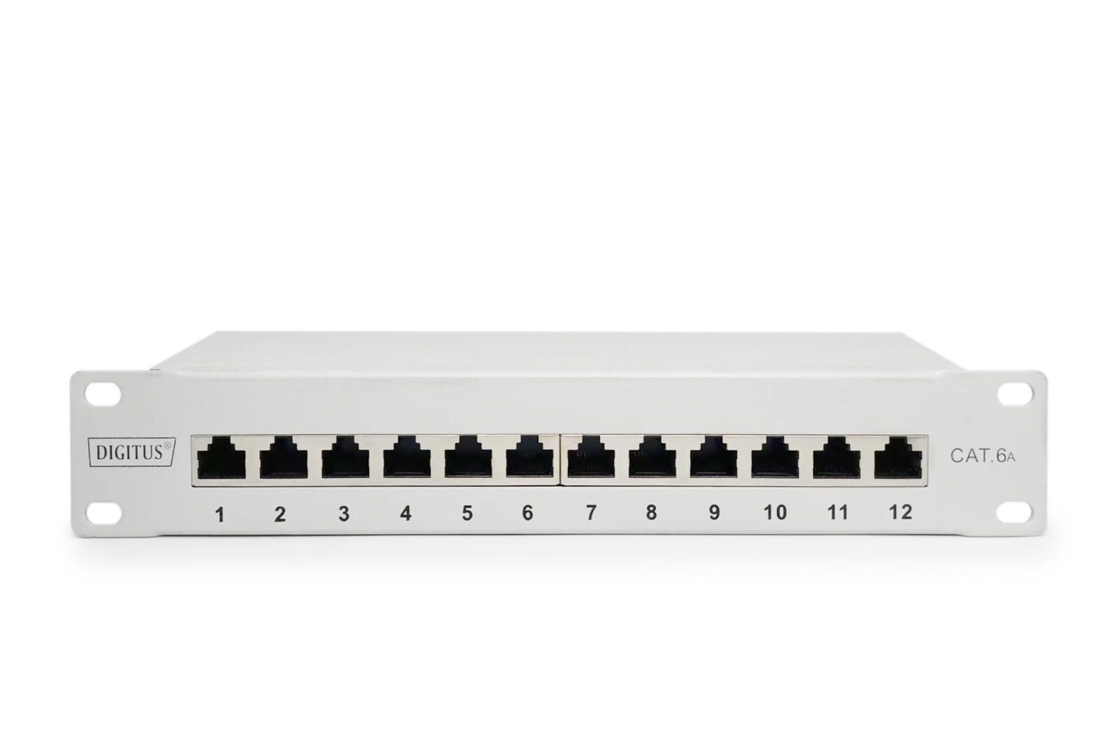 Digitus CAT 6A Patch Panel, geschirmt, 12-Port, 1HE, 10", grau