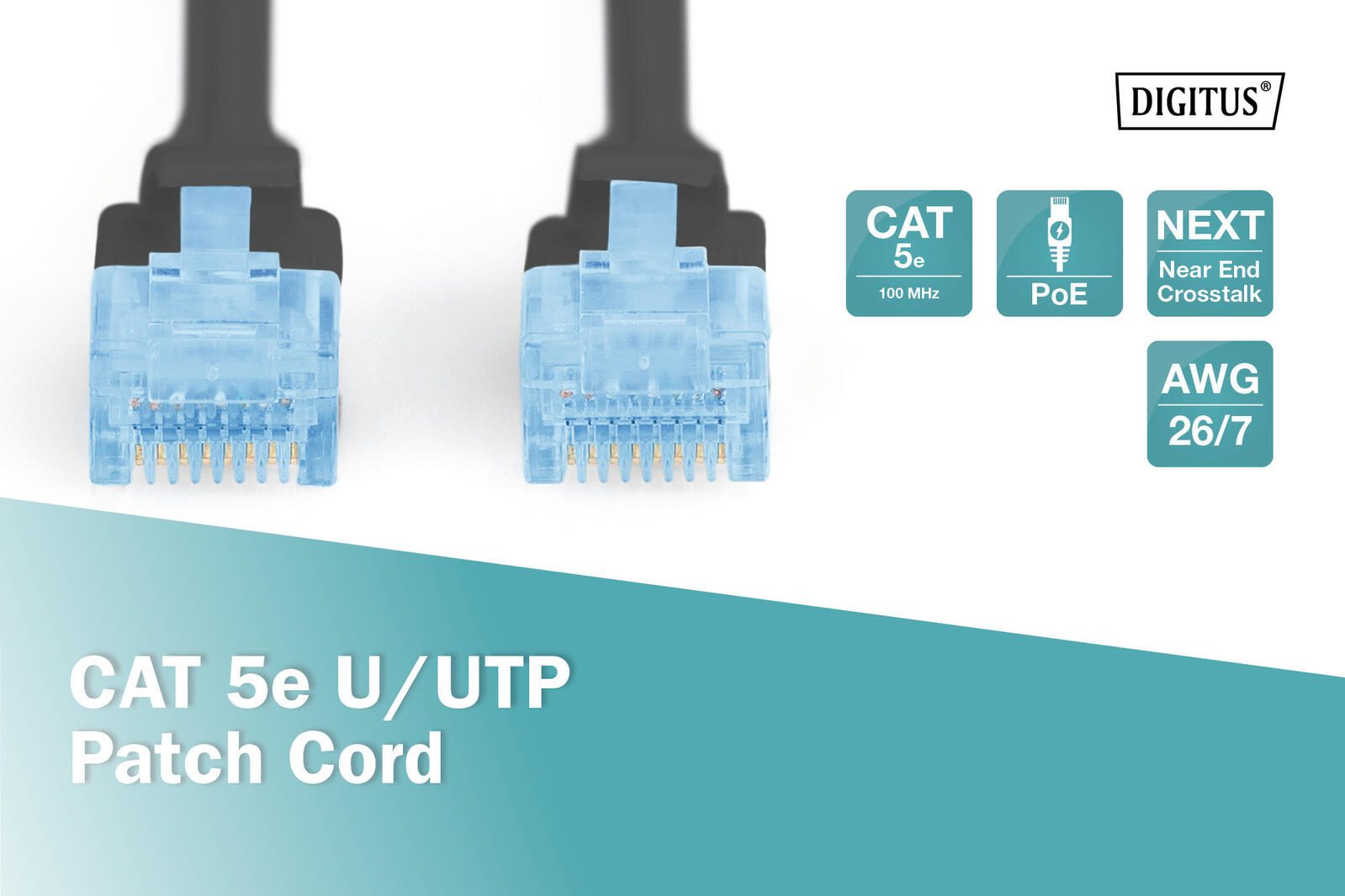 Die DIGITUS Kategorie 5e Klasse D Patchkabel werden hergestellt und getestet nach dem ISO/IEC 11801 und DIN EN 50173 CAT 5e Standard. Sie garantieren, dass die Kabelinstallation der ISO & EN Channel Spezifikation entspricht und bieten eine hervorragende Leistung in der DIGITUS CAT 5e Verkabelung. Die Leistung wurde bis 100 MHz getestet, inklusive Leistungseigenschaften wie beispielsweise dem Nahnebensprechen („NEXT“). Die DIGITUS® Patchkabel wurden speziell entwickelt um allen Ansprüchen in den verschiedenen Anwendungsbereichen in vollem Umfang gerecht zu werden. Jedes Kabel ist mit einer angespritzten Knickschutztülle mit Zugentlastung ausgestattet. Außerdem besitzt die Tülle einen Rasthebelschutz, welcher das Verhaken der Kabel sowie das Abbrechen des Rasthebels vom Stecker verhindert. Eine einfache Identifizierung der Kategorie 5e wird durch die blaue Einfärbung der Stecker ermöglicht.