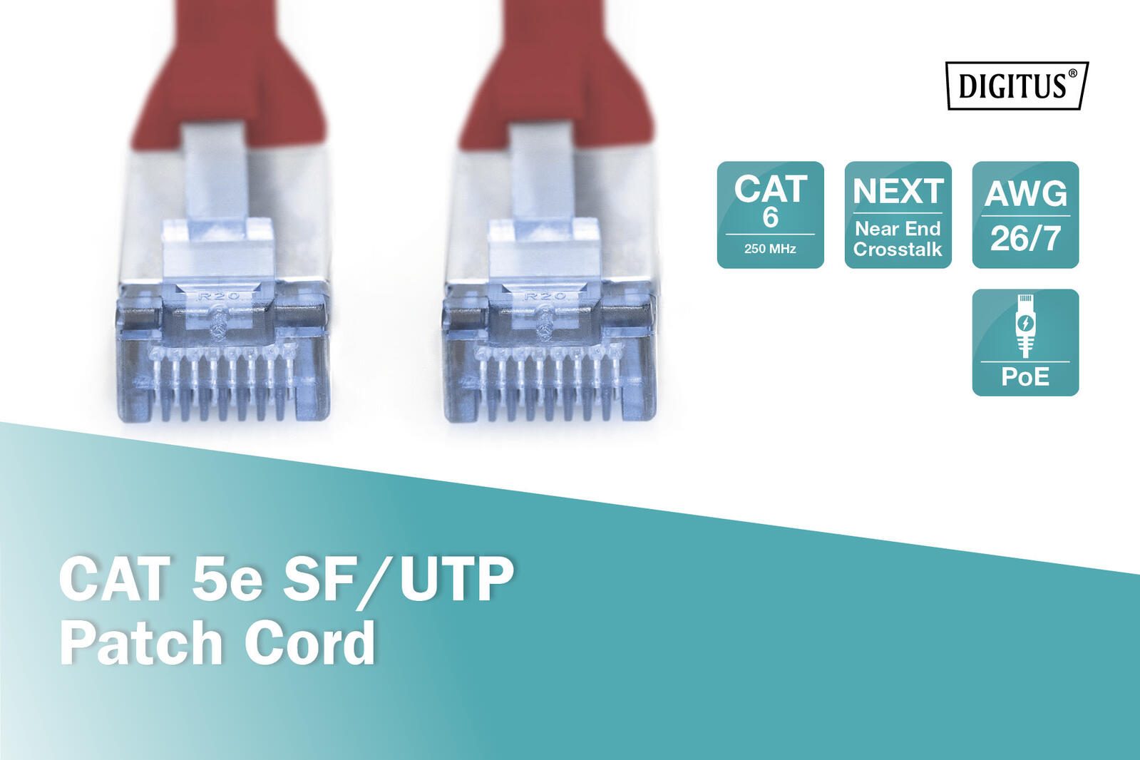 Die DIGITUS Kategorie 5e Klasse D Patchkabel werden hergestellt und getestet nach dem ISO/IEC 11801 und DIN EN 50173 CAT 5e Standard. Sie garantieren, dass die Kabelinstallation der ISO & EN Channel Spezifikation entspricht und bieten eine hervorragende Leistung in der DIGITUS CAT 5e Verkabelung. Die Leistung wurde bis 100 MHz getestet, inklusive Leistungseigenschaften wie beispielsweise dem Nahnebensprechen („NEXT“). Die DIGITUS Patchkabel wurden speziell entwickelt um allen Ansprüchen in den verschiedenen Anwendungsbereichen in vollem Umfang gerecht zu werden. Jedes Kabel ist mit einer angespritzten Knickschutztülle mit Zugentlastung ausgestattet. Außerdem besitzt die Tülle einen Rasthebelschutz, welcher das Verhaken der Kabel sowie das Abbrechen des Rasthebels vom Stecker verhindert. Eine einfache Identifizierung der Kategorie 5e wird durch die blaue Einfärbung der Stecker ermöglicht.