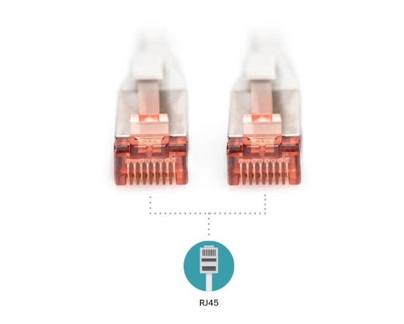 Die DIGITUS® Kategorie 6 Klasse E Patchkabel werden hergestellt und getestet nach dem ISO/IEC 11801 und DIN EN 50173 CAT 6 Standard. Sie garantieren, dass die Kabelinstallation der ISO & EN Channel Spezifikation entspricht und bieten eine hervorragende Leistung in der DIGITUS® CAT 6 Verkabelung. Die Leistung wurde bis 250 MHz getestet, inklusive Leistungseigenschaften wie beispielsweise dem Nahnebensprechen („NEXT“). Die DIGITUS® Patchkabel wurden speziell entwickelt um allen Ansprüchen in den verschiedenen Anwendungsbereichen in vollem Umfang gerecht zu werden. Jedes Kabel ist mit einer angespritzten Knickschutztülle mit Zugentlastung ausgestattet. Außerdem besitzt die Tülle einen Rasthebelschutz, welcher das Verhaken der Kabel sowie das Abbrechen des Rasthebels vom Stecker verhindert. Eine einfache Identifizierung der Kategorie 6 wird durch die rote Einfärbung der Stecker ermöglicht.