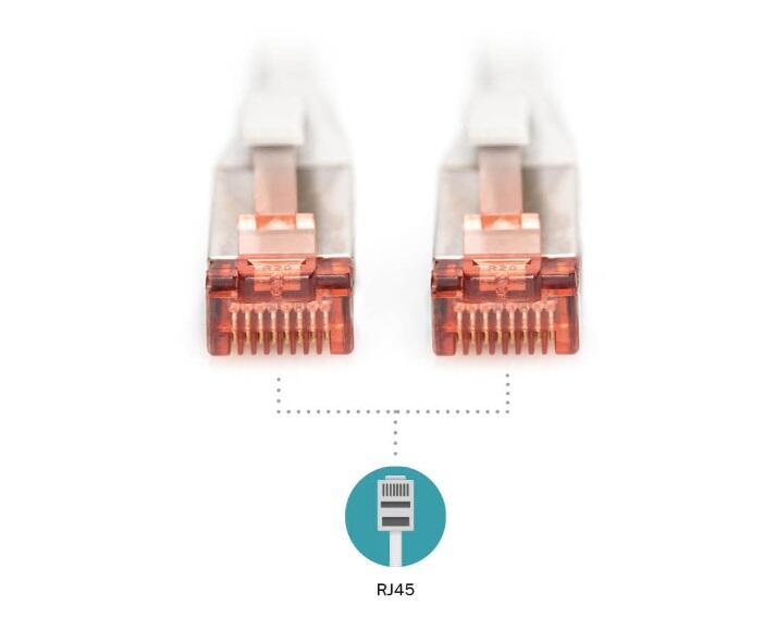 Die DIGITUS® Kategorie 6 Klasse E Patchkabel werden hergestellt und getestet nach dem ISO/IEC 11801 und DIN EN 50173 CAT 6 Standard. Sie garantieren, dass die Kabelinstallation der ISO & EN Channel Spezifikation entspricht und bieten eine hervorragende Leistung in der DIGITUS® CAT 6 Verkabelung. Die Leistung wurde bis 250 MHz getestet, inklusive Leistungseigenschaften wie beispielsweise dem Nahnebensprechen („NEXT“). Die DIGITUS® Patchkabel wurden speziell entwickelt um allen Ansprüchen in den verschiedenen Anwendungsbereichen in vollem Umfang gerecht zu werden. Jedes Kabel ist mit einer angespritzten Knickschutztülle mit Zugentlastung ausgestattet. Außerdem besitzt die Tülle einen Rasthebelschutz, welcher das Verhaken der Kabel sowie das Abbrechen des Rasthebels vom Stecker verhindert. Eine einfache Identifizierung der Kategorie 6 wird durch die rote Einfärbung der Stecker ermöglicht.
