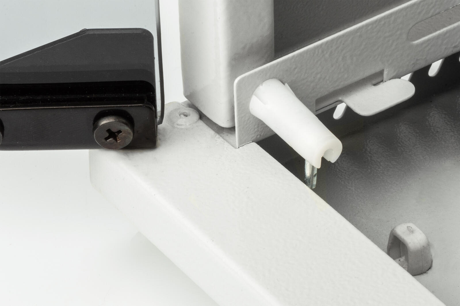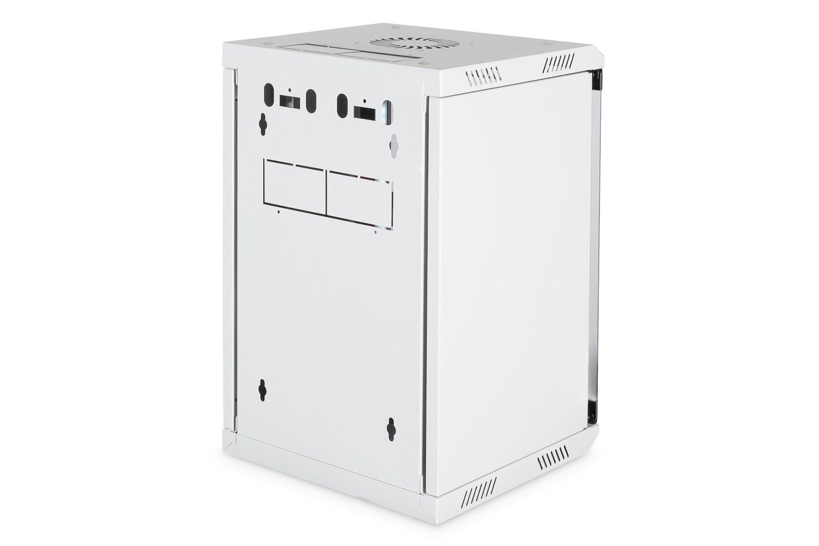 Das Wandgehäuse bietet mit einem vorderseitig installierten rundläufigen Profilrahmen die Möglichkeit zur horizontalen Montage von 254 mm (10") Komponenten (10 Höheneinheiten) sowie alternativ einer vertikalen Montage von 482,6 mm (19") Komponenten (5 Höheneinheiten). Der vordere Profilrahmen ist tiefenverstellbar. Des Weiteren befindet sich im hinteren Bereich eine im Schrankrahmen integrierte Profillochung zur Befestigung von weiteren Komponenten mit 254 mm (10")-Maßen. Das Gehäuse ist aus einer robusten Stahlkonstruktion gefertigt. Die Kabeleinführungsöffnungen im Dach, Boden und der Rückseite bieten beste Möglichkeiten für ein ordentliches Kabelmanagement. Das kompakte Gehäuse ist somit ideal für alle gängigen EDV- und Telekommunikationsanwendungen, besonders bei begrenzten Platzverhältnissen und privaten Haushalten.