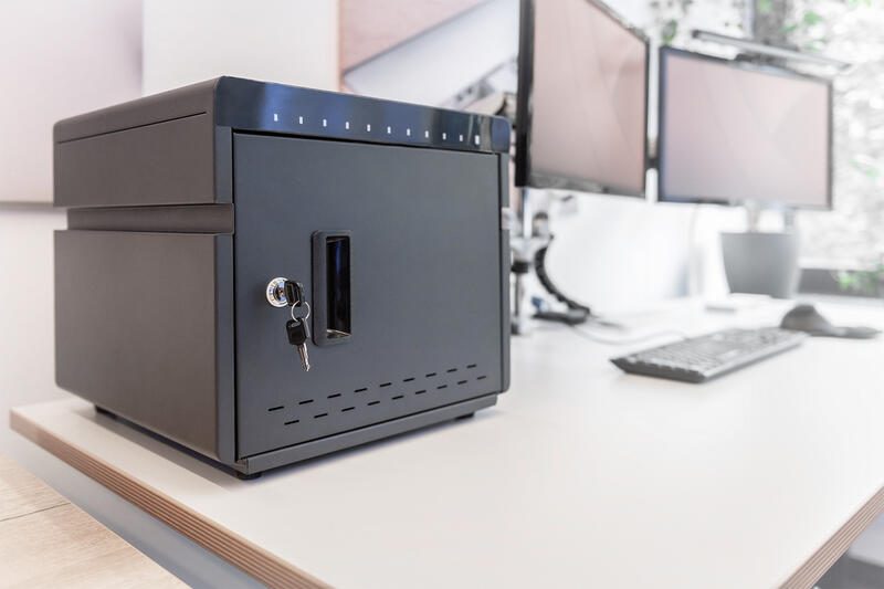 Mobiler Ladeschr.,Desktop Vers.,10 Ladestat.,schw. 345 x 360 x 370 mm, inkl. USB, Lüfter