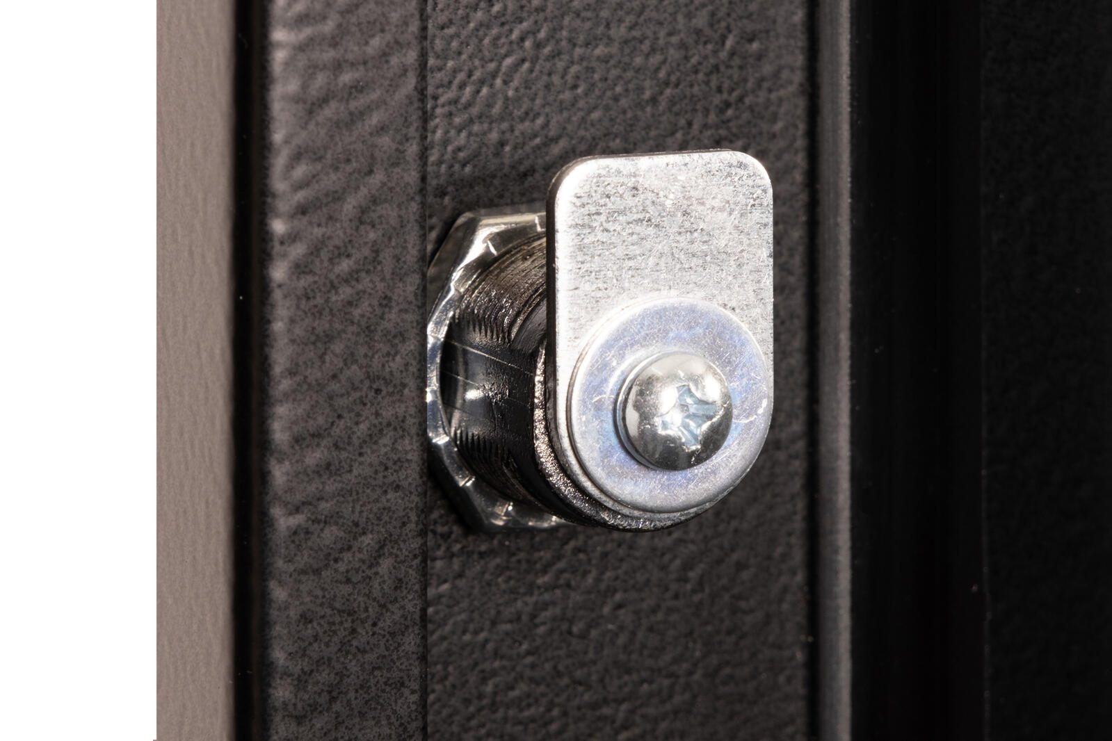 - Sicherheitsglastür mit Stahlrahmen in Schwarz (RAL 9005)