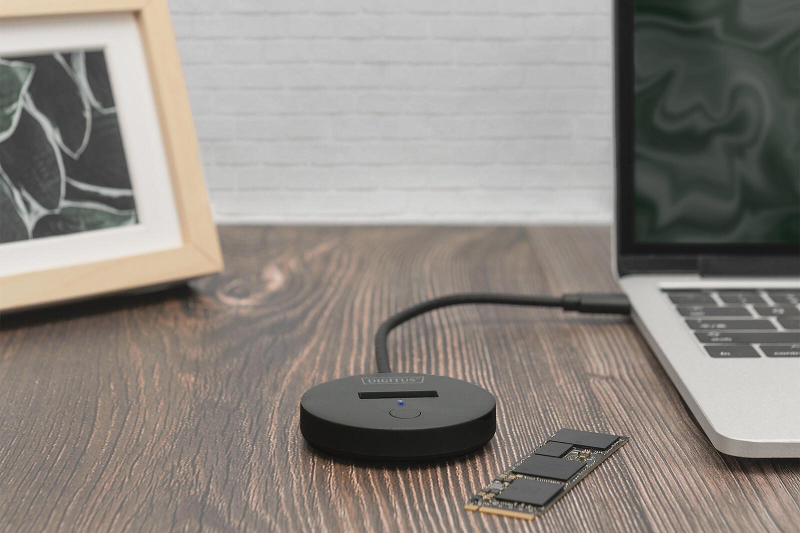 Die SSD Docking Station von DIGITUS® kann M.2 SSDs in NVMe- oder SATA-Technologie mit bis zu 4 TB aufnehmen. Unterstützt werden NVMe SSDs mit B+M Key & M-Key sowie SATA SSDs mit B+M-Key, jeweils in den Formaten 2242, 2260, 2280 & 22110. Erweitern Sie auf einfache Weise die Speicherkapazität zahlreicher USB-C™ Geräte wie PC, Notebook, TV-Geräte, Spielekonsolen oder Router.