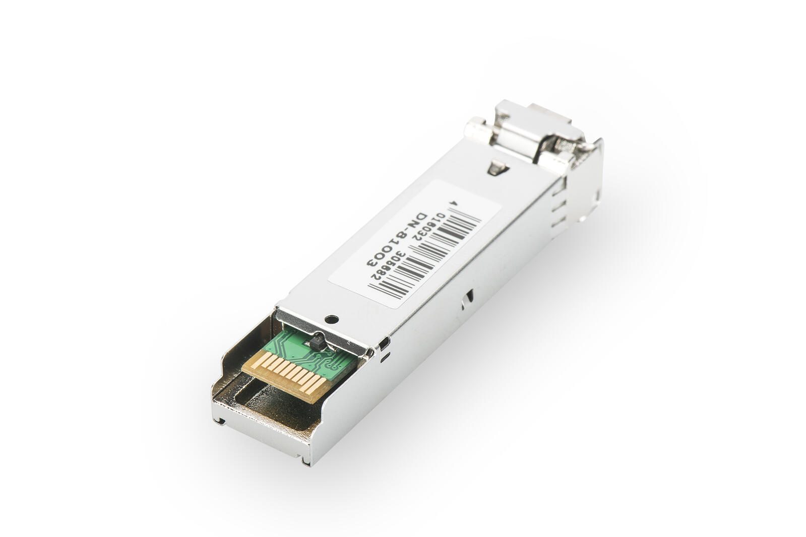 Die DIGITUS® Mini GBIC (SFP) Transceiver Module bieten höchste Qualität und Zuverlässigkeit. Ob von Switch zu Switch, Konverter zu Switch, Konverter zu Konverter oder weitere, umfangreiche Einsatzmöglichkeiten: Die große Vielfalt an DIGITUS® Modulen ermöglicht Ihnen einen flexiblen Einsatz der Glasfasertechnologie. Durch die Konformität mit dem MSA (Multi Source Agreement)-Standard ist eine Kompatibilität mit Drittherstellern gewährleistet.
