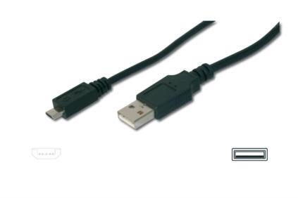 Digitus USB 2.0 Anschlusskabel, Typ A - micro B St/St, 3.0m, USB 2.0 konform, sw
