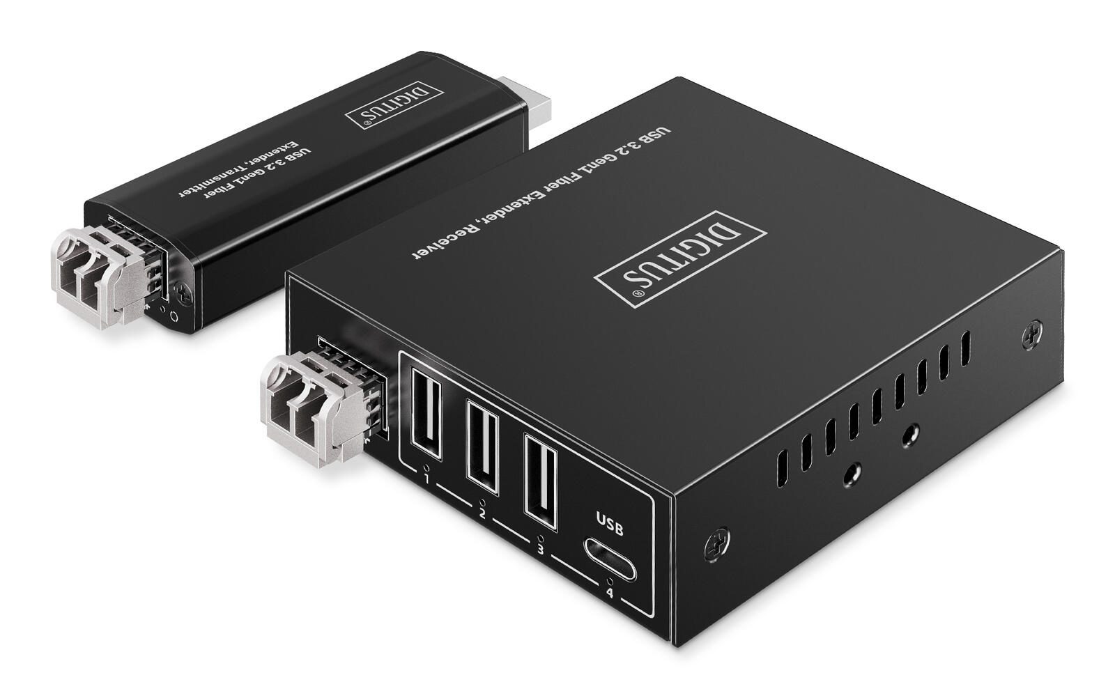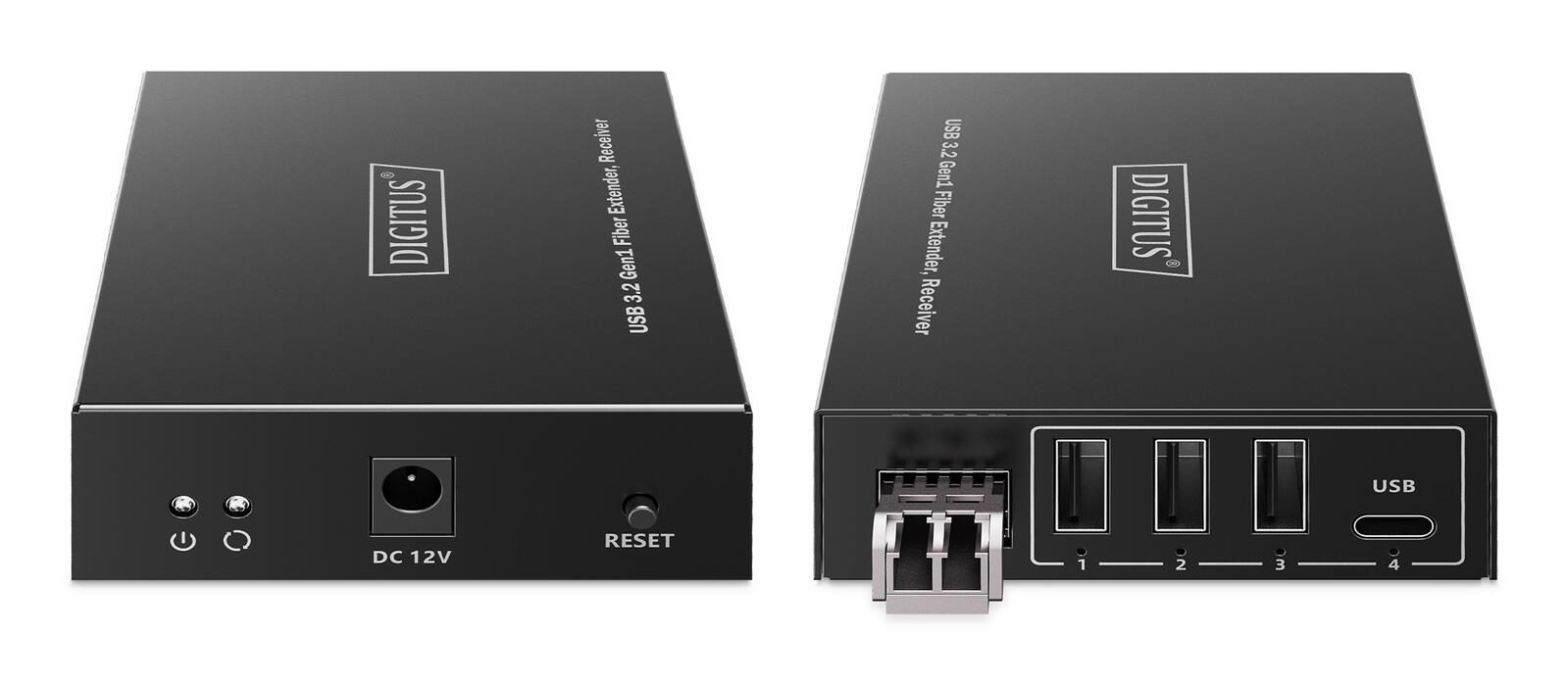 Digitus USB 3.2 Gen1 Fiber Extender, 5 Gbps, 4 Ports: 3x USB-A / 1x USB-C, 300m