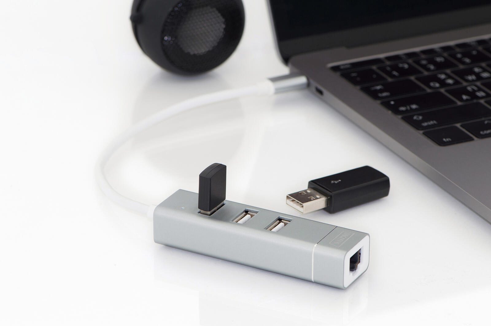 Digitus USB Typ-C™ 3-Port Hub + Fast Ethernet LAN-Adapter