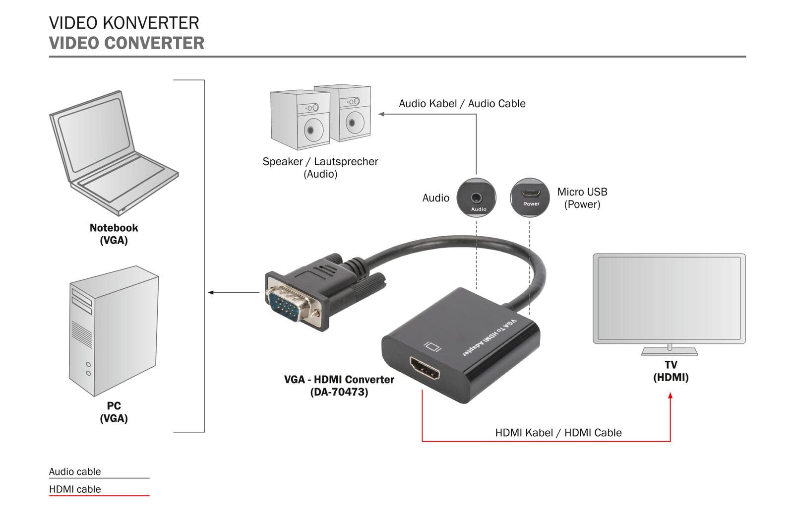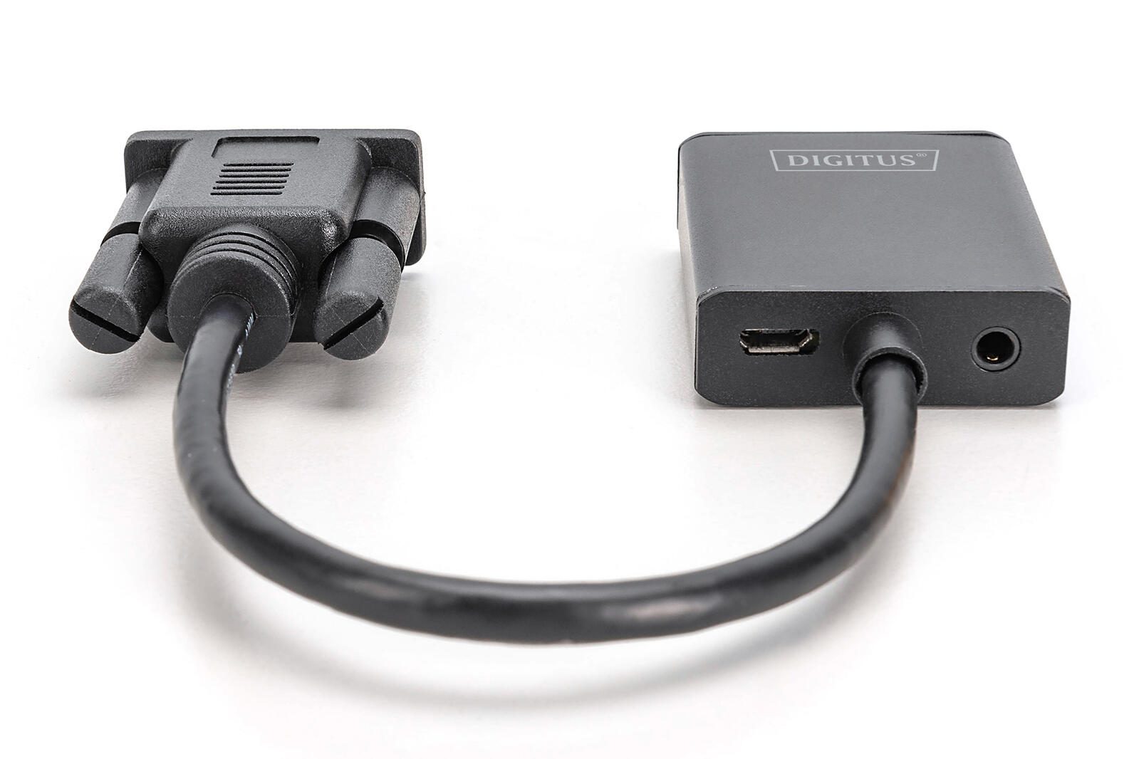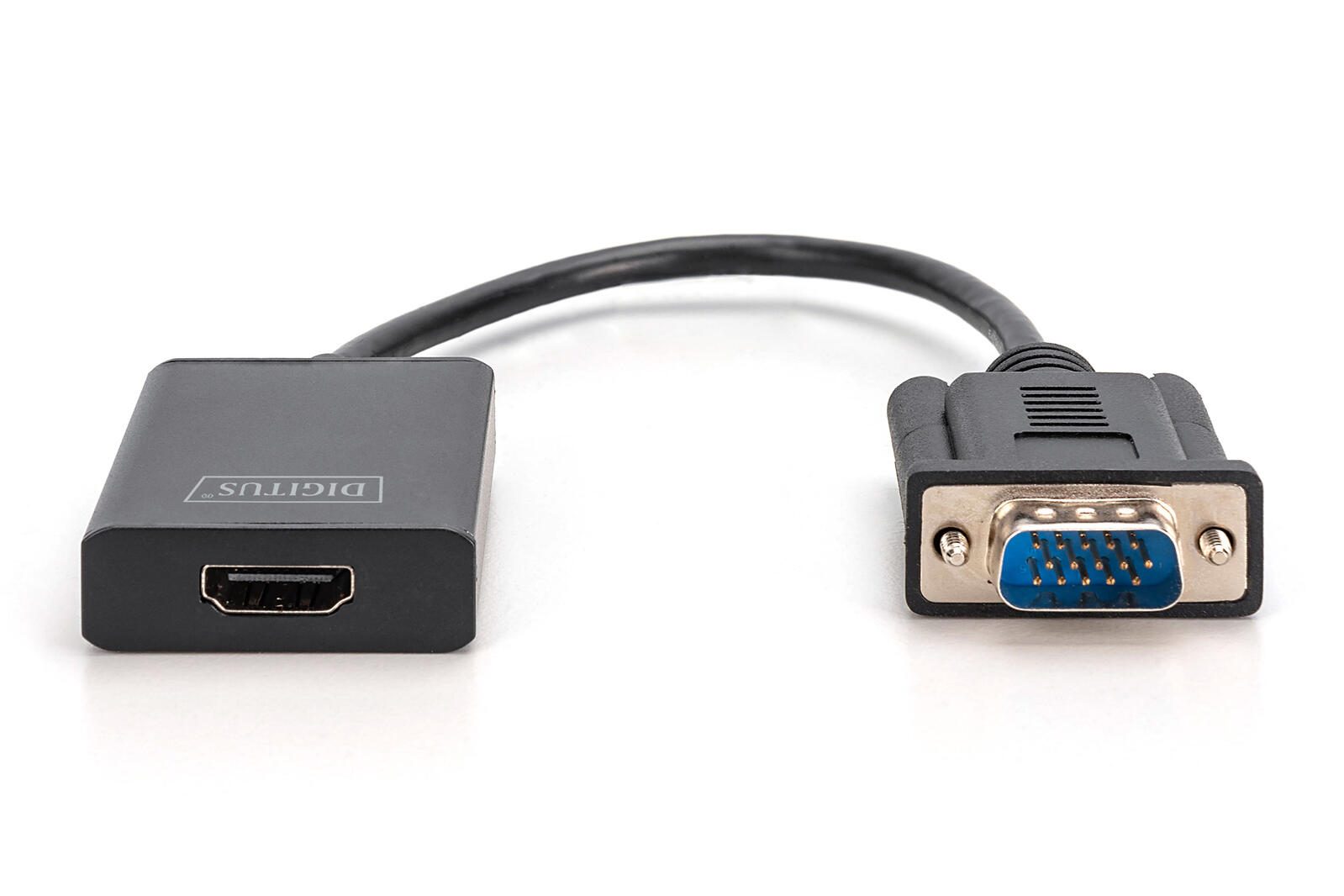 Digitus VGA auf HDMI Konverter + Audio (3,5mm) Full HD (1080p), Kabeltyp (15 cm), schwarz