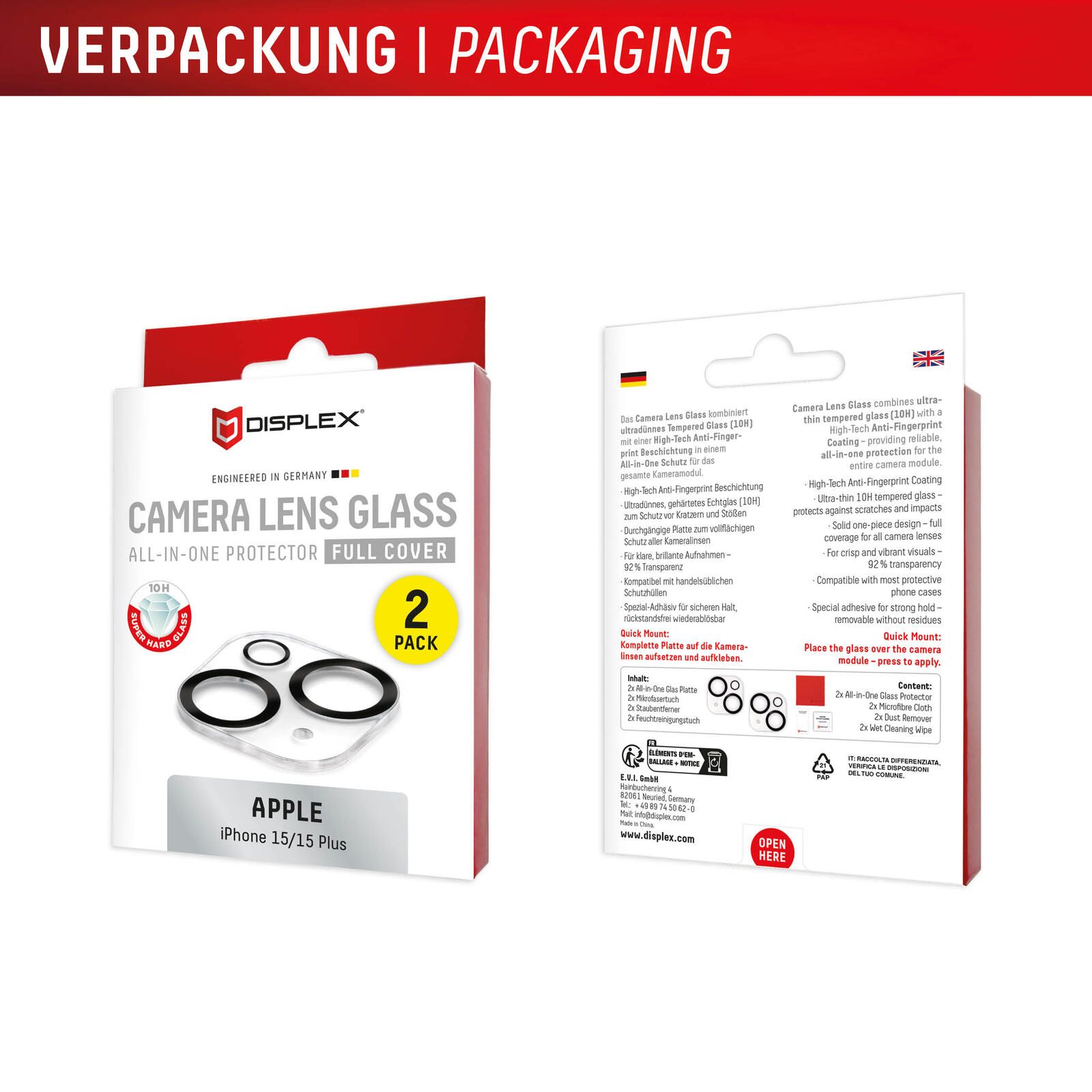 DISPLEX Full Cover Camera Lens Glass, iPhone 15/15 Plus (2 Stück)
