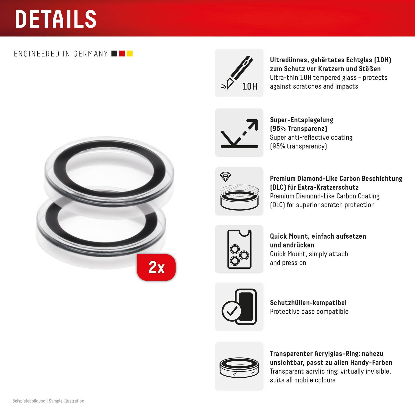 - 10H Echtglas-Glasringe schützen jede Kameralinse einzeln: Ultraharte Einzelringe gegen Kratzer, Stöße und Staub – direkt auf der Linse.